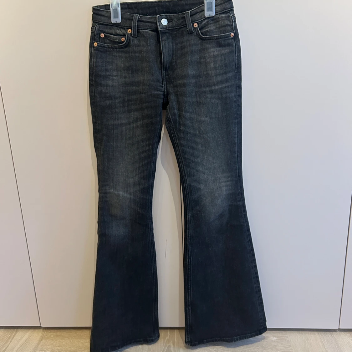 Säljer ett par svarta/gråa jeans från weekday, som tyvärr är för små får mig💗storlek w25, L32
