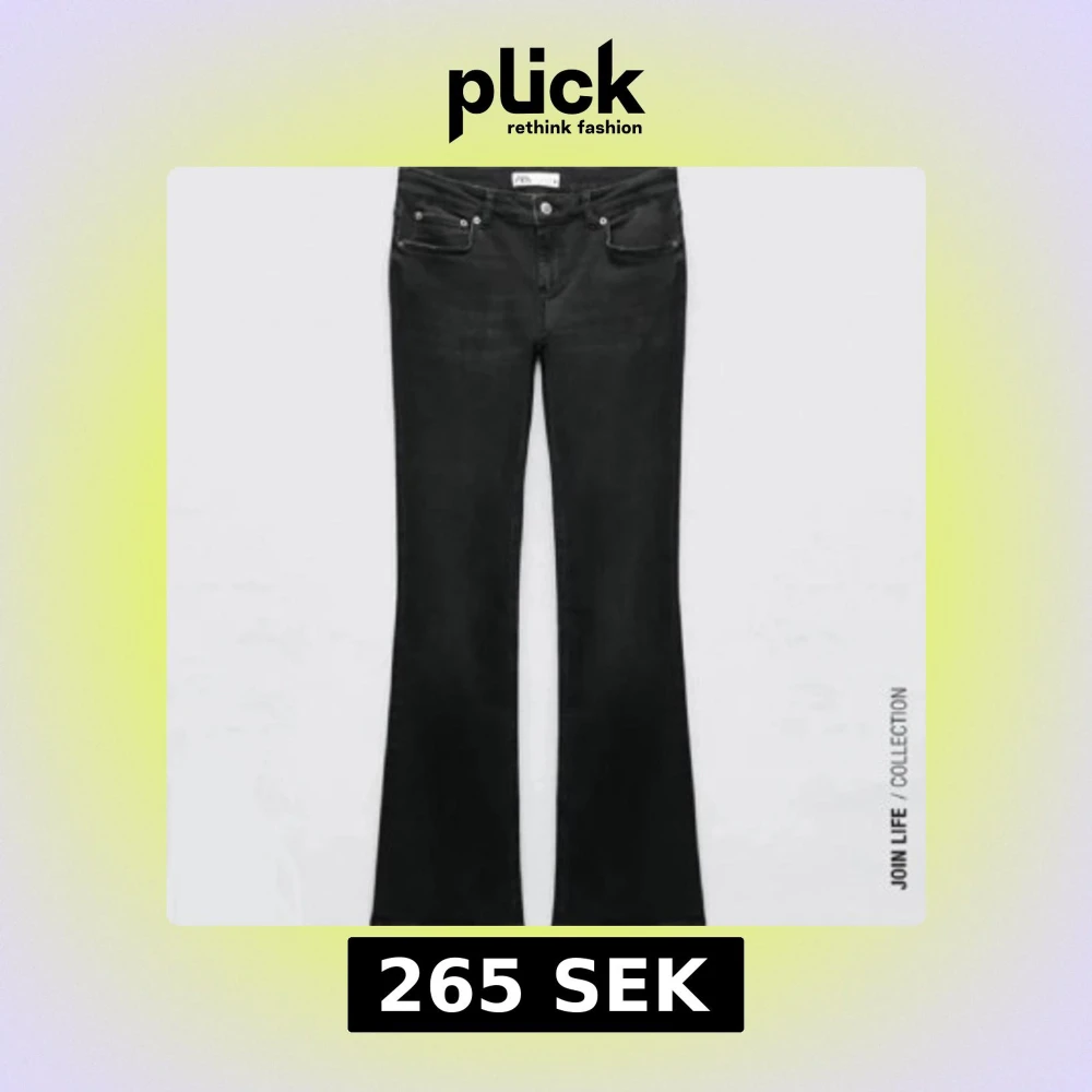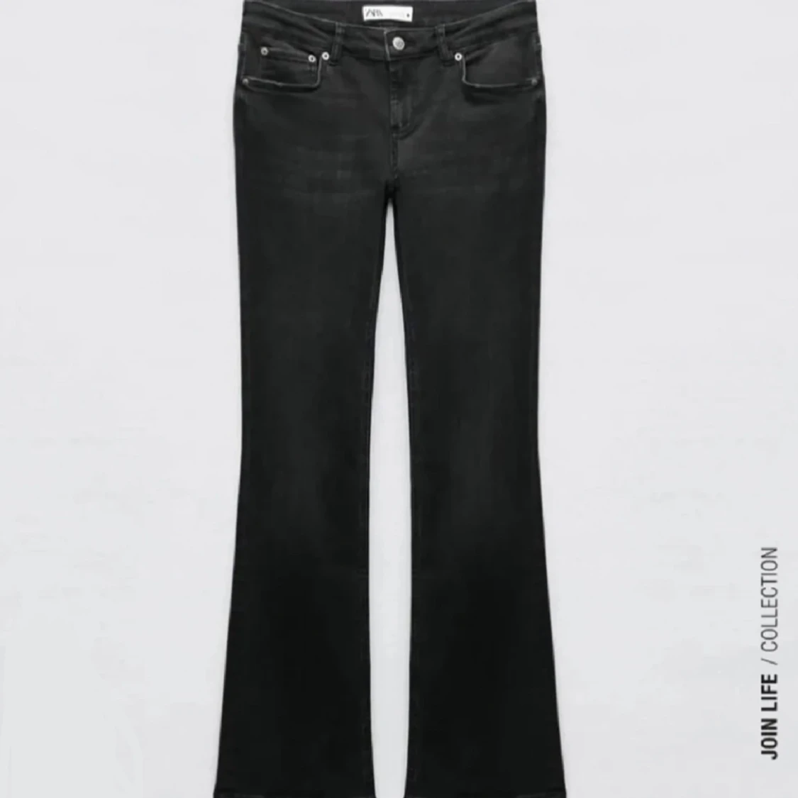 Svarta jeans från Zara med klassisk femficksdesign och bootcut-ben. Snyggt svarta med diskret tvätt och normal passform. Perfekta för dig som gillar en tidlös look med lite utsvängda ben. Tillverkade i mjukt denimtyg för skön känsla.