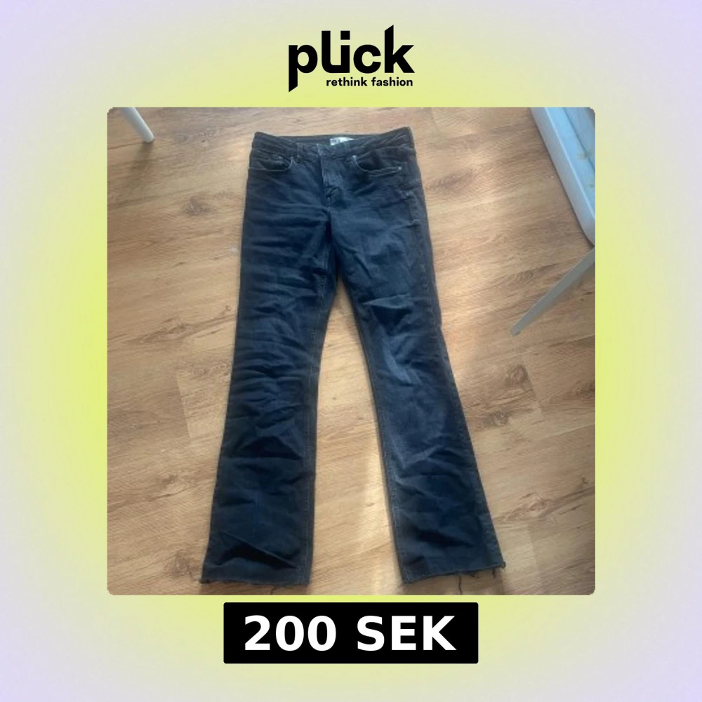 Svarta jeans från Zara med bootcut passform och råa kanter nertill. Klassisk femficksmodell i mjukt denimtyg, perfekt för en avslappnad och trendig look. Snygga att matcha med sneakers eller boots.