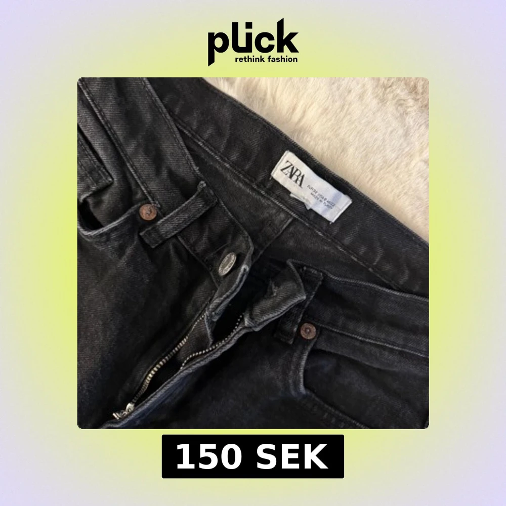 Storlek 32! Snygga svarta jeans från Zara med bootcut passform och klassisk femficksdesign. Jeansen har dragkedja och knapp framtill, samt raka bakfickor. Jeansen är uppsydda och passar mig som är 162!