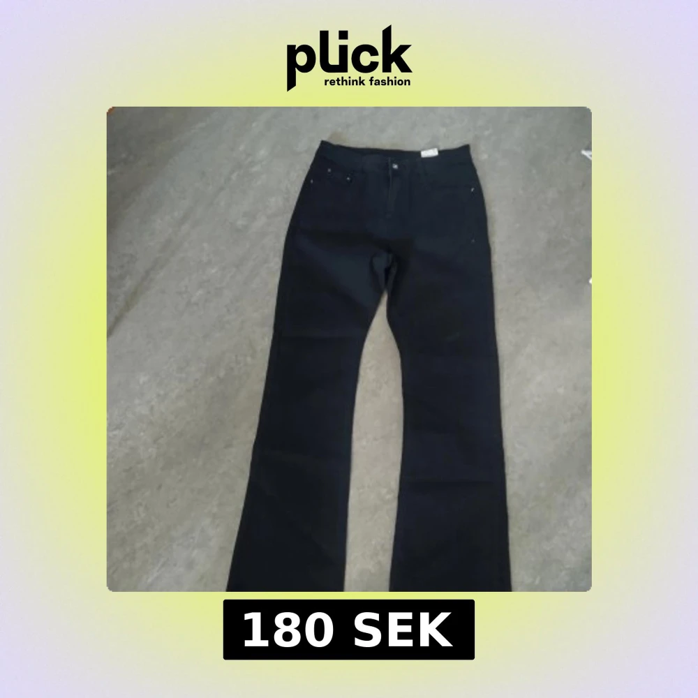 Snygga svarta jeans med bootcut passform och klassisk femficksdesign. Jeansen har en stilren look med svarta sömmar och bälteshällor. Perfekta för dig som gillar en tidlös och clean stil. Materialet är jeans och färgen är helsvart.