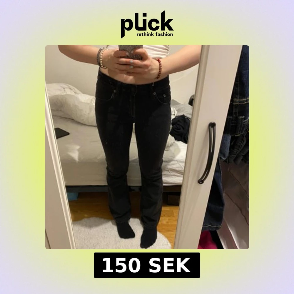 Snygga svarta bootcut jeans med lĂ„g midja. Perfekta för en stilren look. SĂ€ljer dĂ„ de tyvĂ€rr Ă€r aningen för korta dĂ„ de Ă€r short length, de Ă€r alltsĂ„ aldrig anvĂ€nda!đ„°Orginalpris var 400 kr! Hör gĂ€rna av er med prisförslag!
