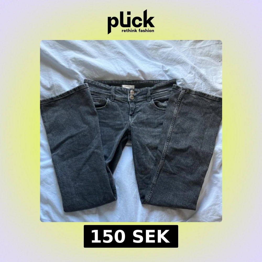Snygga svarta jeans med bootcut passform och dubbla knappar i midjan från ginatricot. Klassiska fickor fram och bak med lock och silverfärgade knappar. Perfekta för dig som vill ha en tidlös look med lite extra detaljer. Storlek 152. Midjemått rakt över: 36cm. Innerbenslängd: 78cm. Skriv till mig om du vill ha fler bilder, pris kan diskuteras! 💕