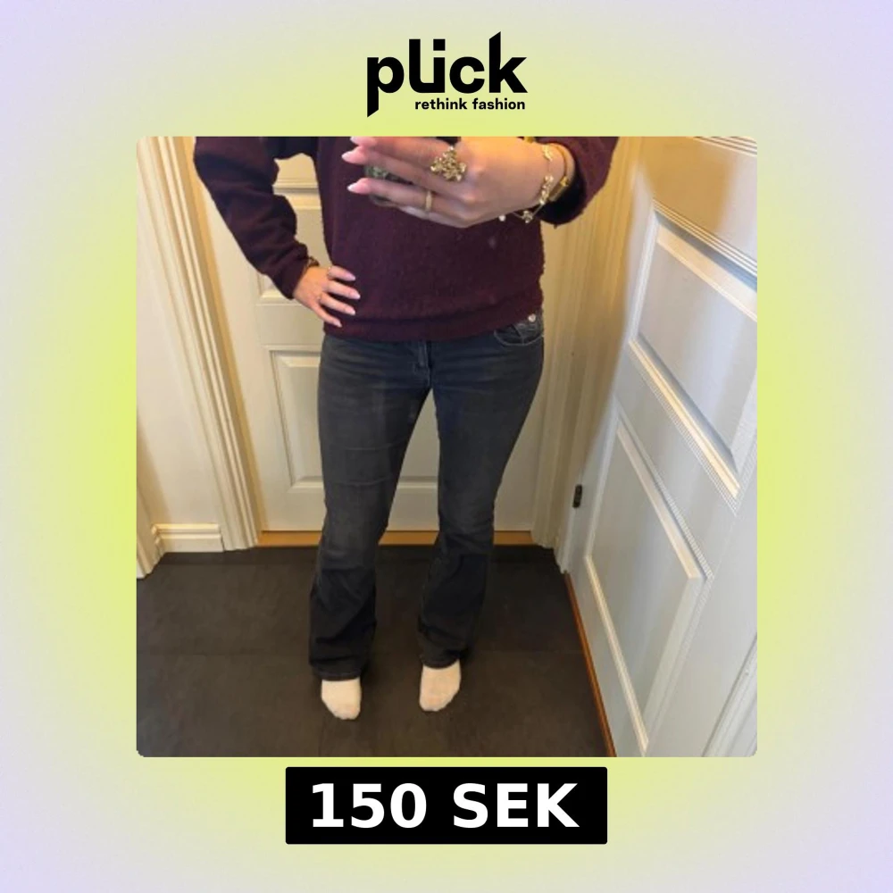 Snygga svarta jeans från Gina Tricot med bootcut passform och coola fickdetaljer bak med knapp. Perfekta för dig som gillar en tidlös men trendig look. Hör av er vid eventuella frågor!🥰