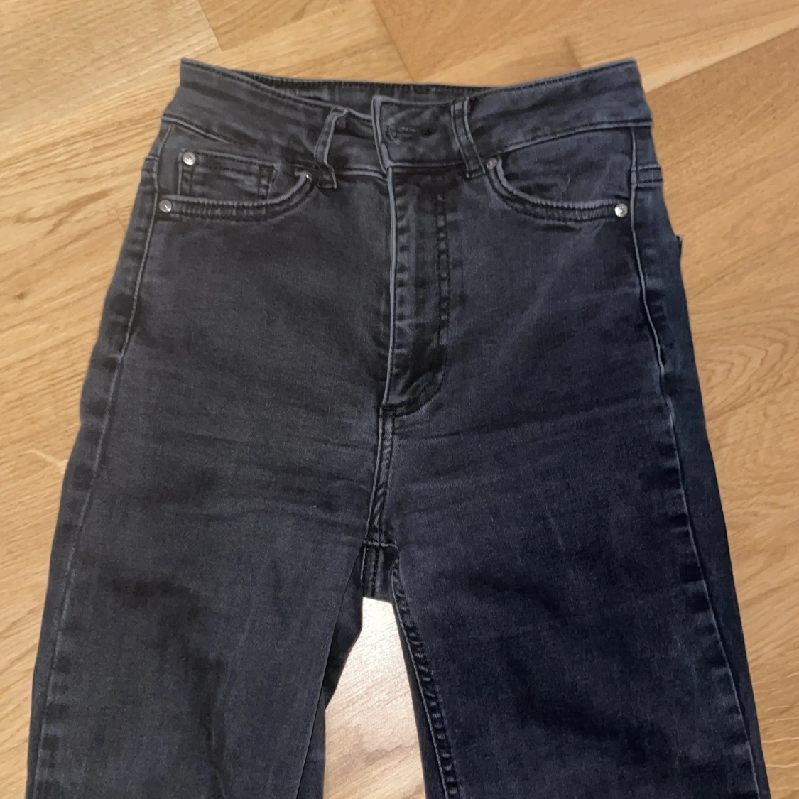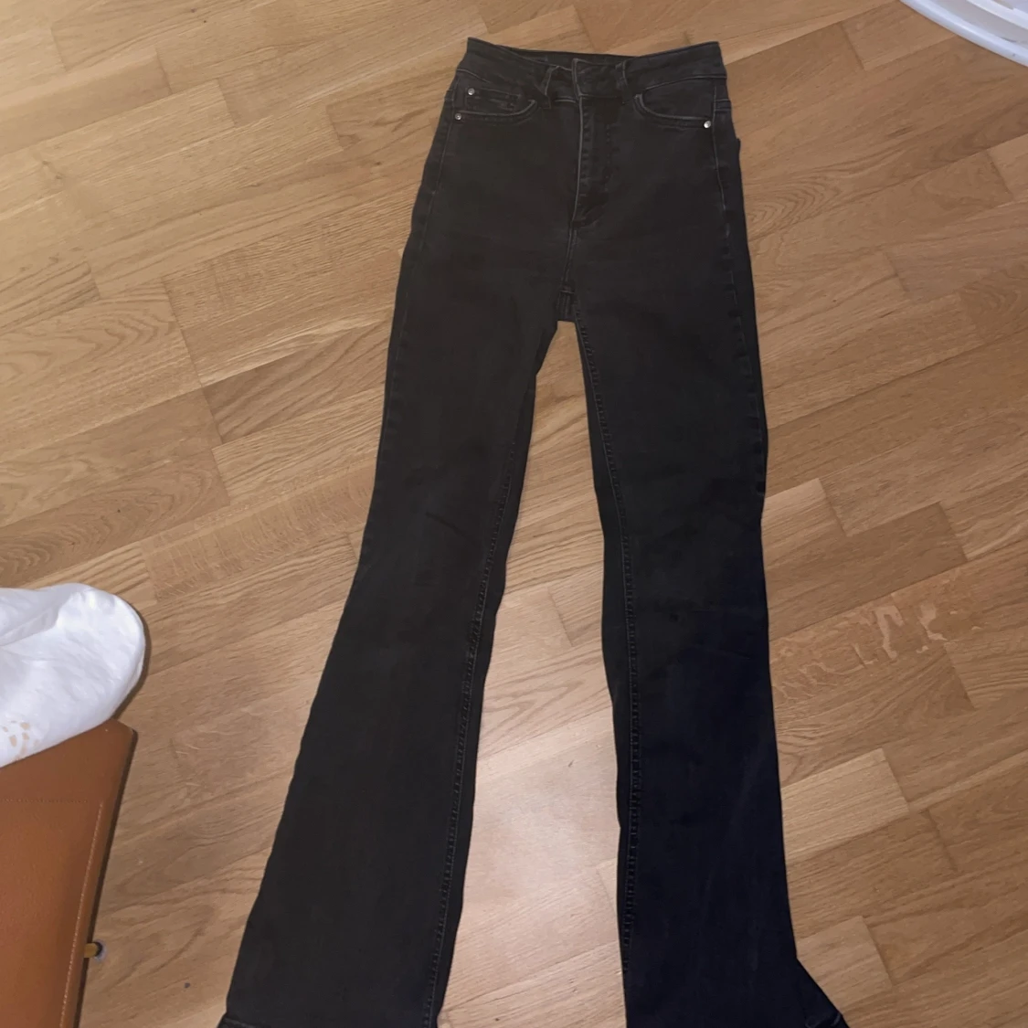 Snygga svarta jeans med bootcut-modell och hög midja. Klassisk femficksdesign och bälteshällor. Jeansen har en mörk tvätt och är tillverkade i stretchigt denim för en bekväm passform. Perfekta till sneakers eller boots. de är urtvättade