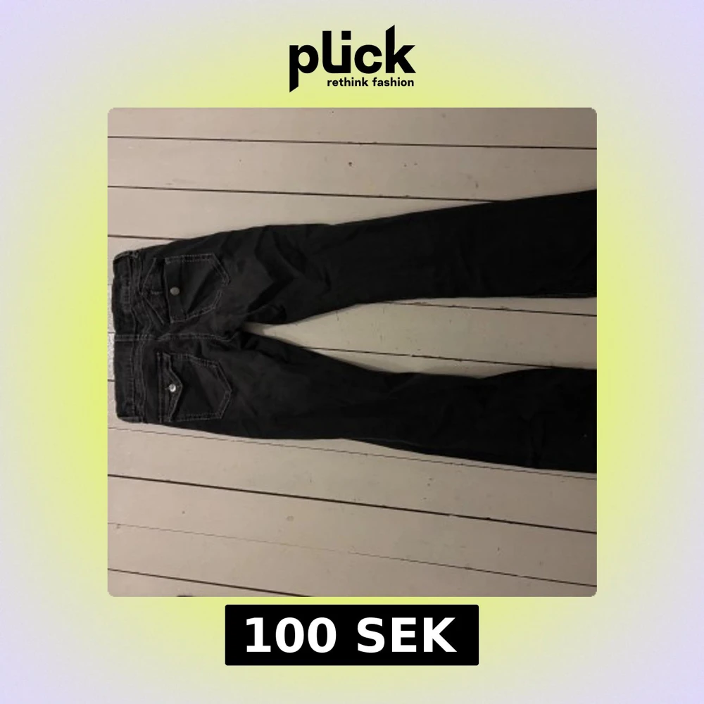 Snygga svarta jeans med vita kontrastsömmar och klassiska fem fickor. Modellen har bootcut-ben och låg midja, vilket ger en cool och avslappnad vibe. Jeansen har silverfärgade knappar och är tillverkade i jeansmaterial.