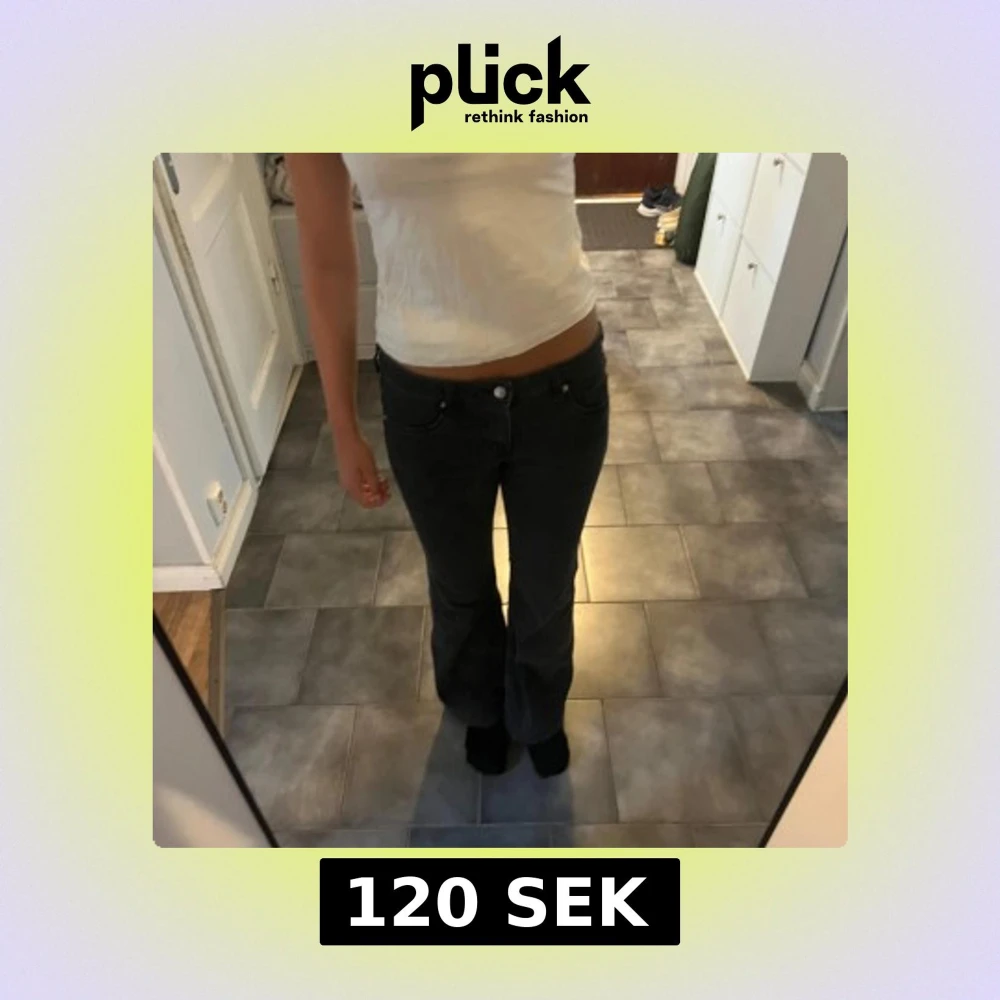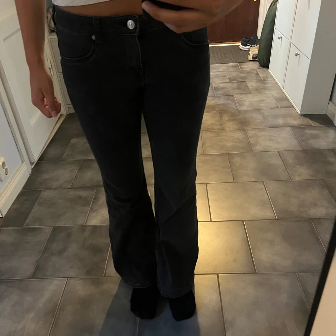 Säljer ett par svarta jeans med bootcut-modell och låg midja.. Snygg passform som sitter tajt upptill och släpper ut vid benen.