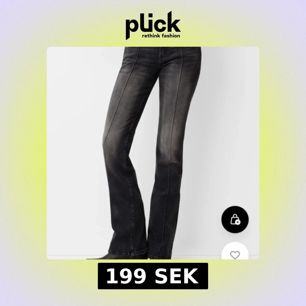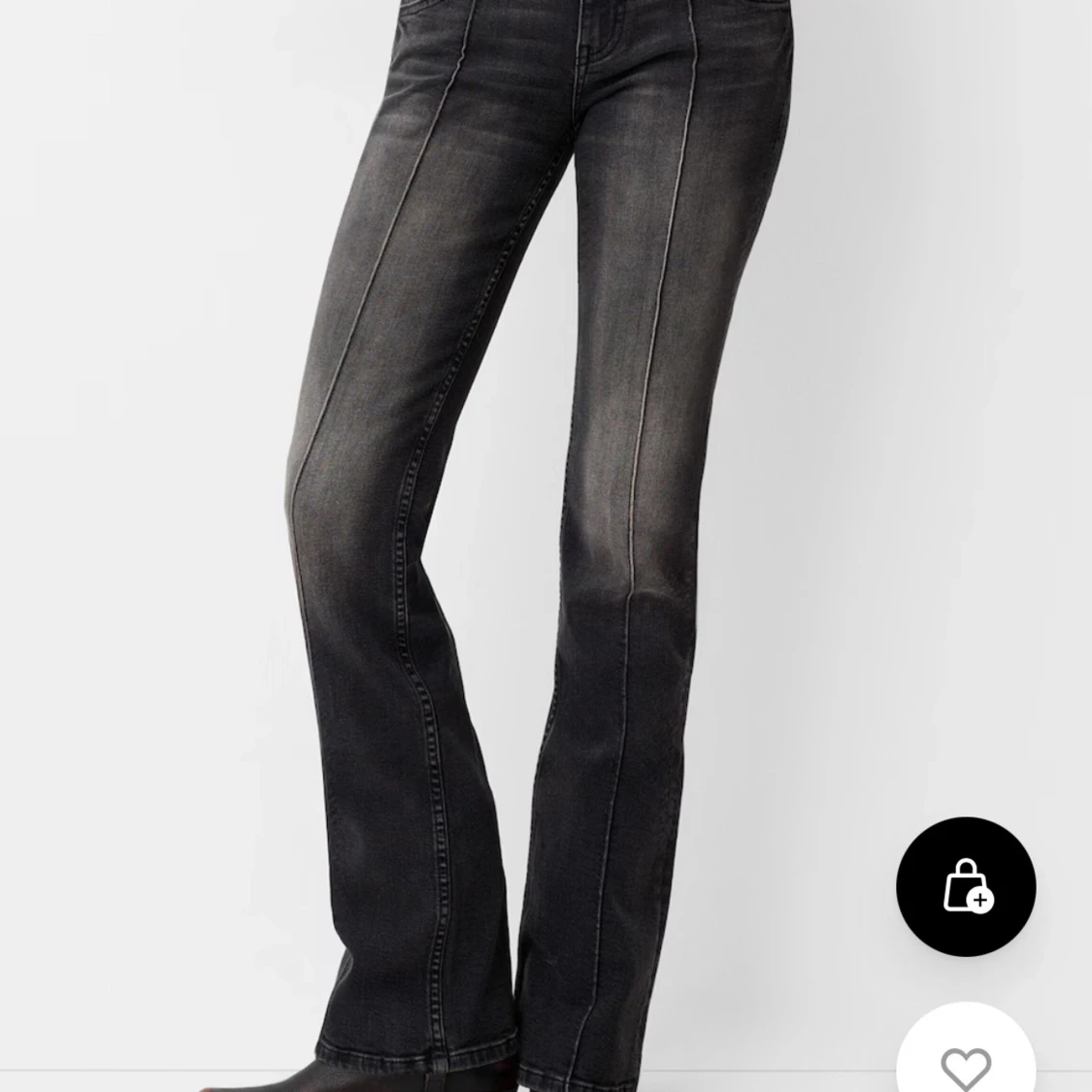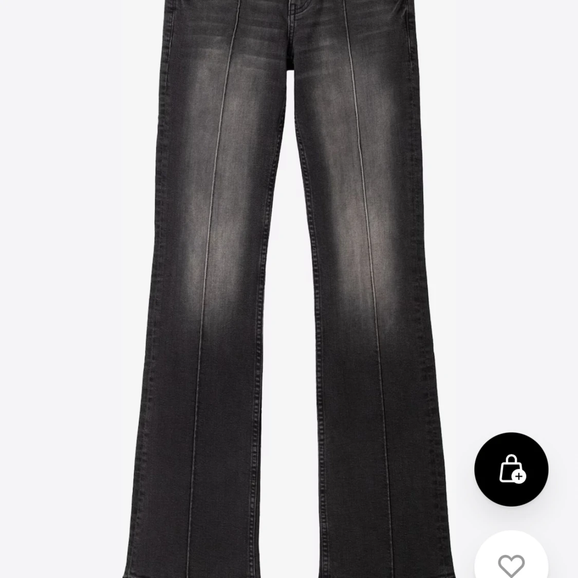 Snygga svarta jeans med bootcut passform och markerade pressveck längs benen. Jeansen har en klassisk femficksdesign och subtila slitningar för en cool look. Perfekta för dig som vill ha en trendig och bekväm stil.