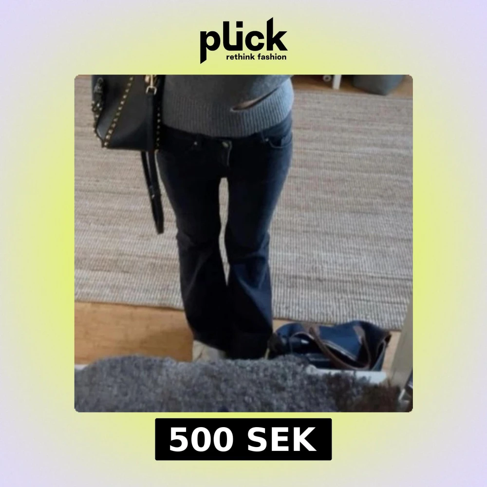Snygga svarta bootcut jeans med låg midja. Storlek m men väldigt långa. Går ner till marken på mig som är 173. Använda bara några få gånger. Midjemått 37