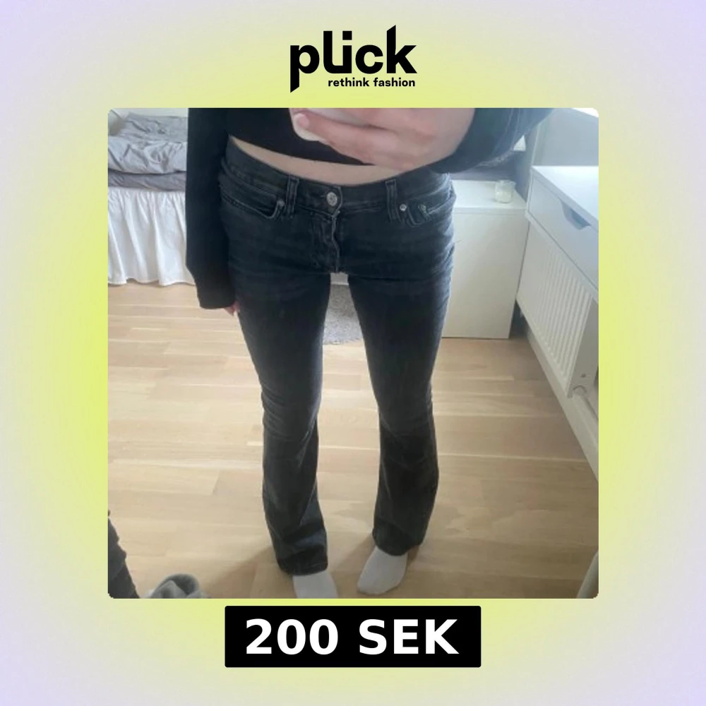 Säljer ett par svarta lowwaist bootcut jeans från Gina Tricot💞För referens är jag 165 och dom är perfekta i längd på mig! Nypris 500 kr