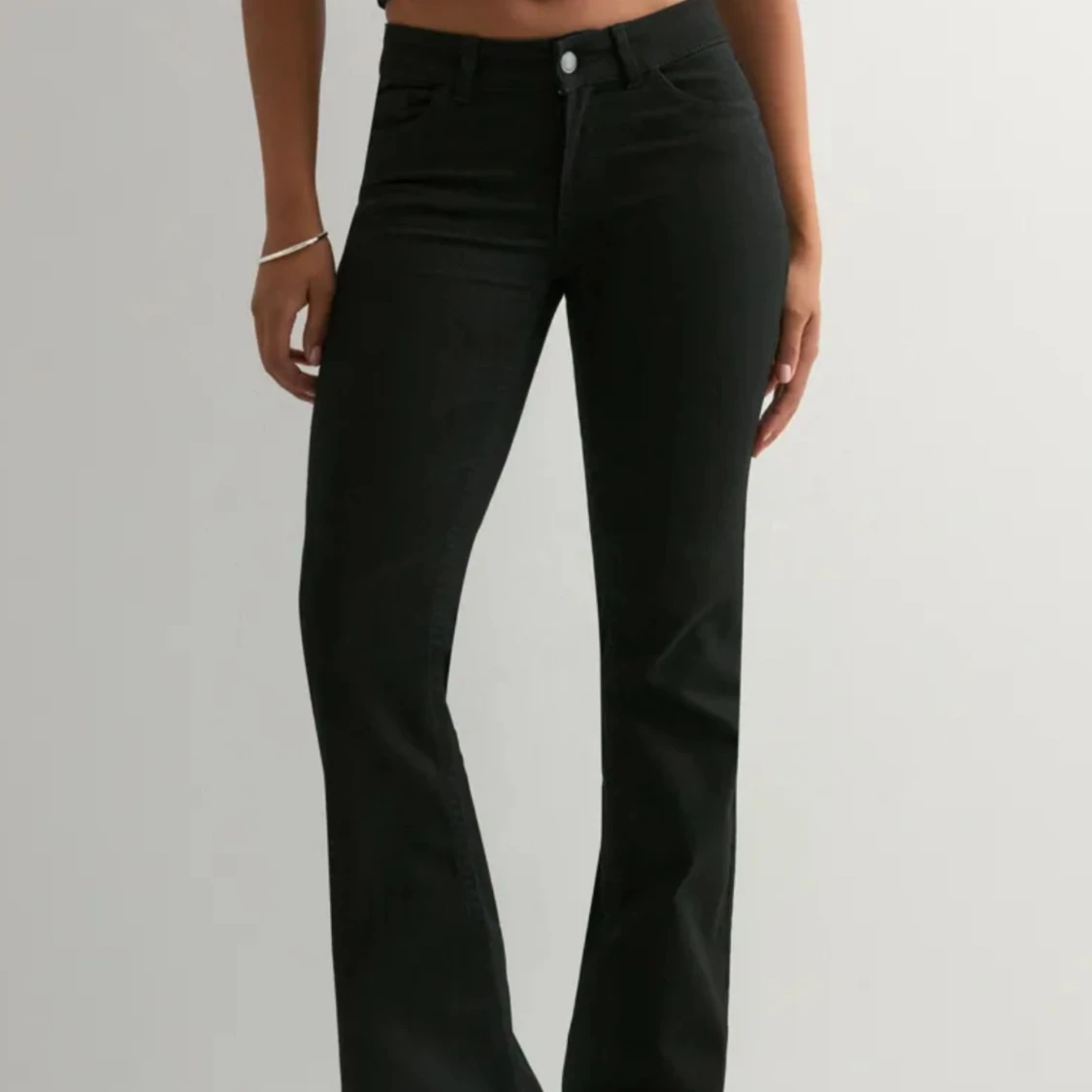 Snygga svarta jeans med bootcut passform. Klassisk femficksmodell med diskreta sömmar på bakfickorna. Jeansen har en stilren look och är tillverkade i ett stretchigt bomullsmaterial för extra komfort. Aldrig använda för dom va lite långa på mig som är 158🥰 Nypris ca 700.