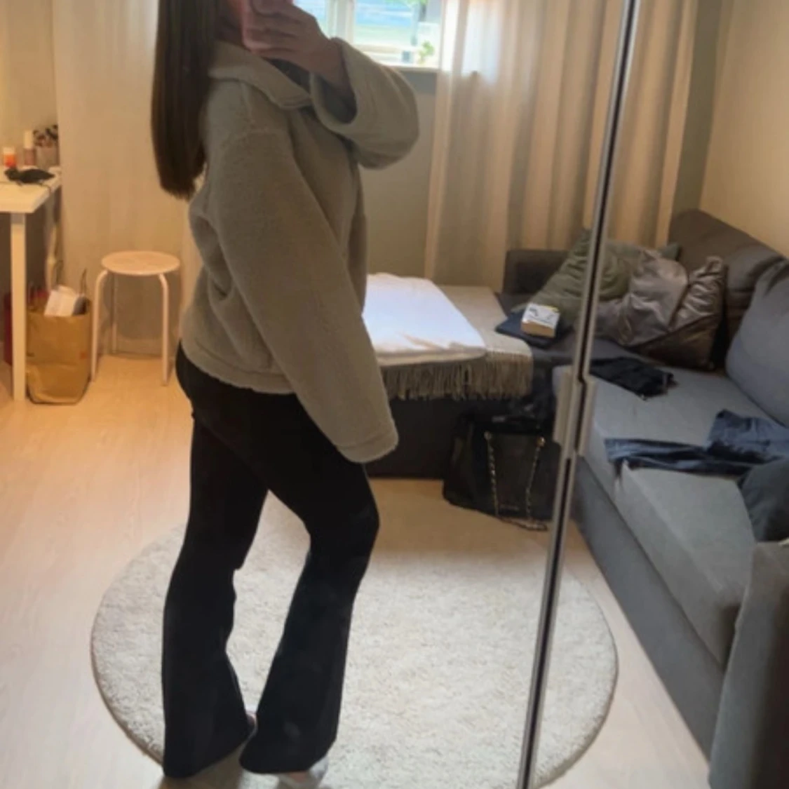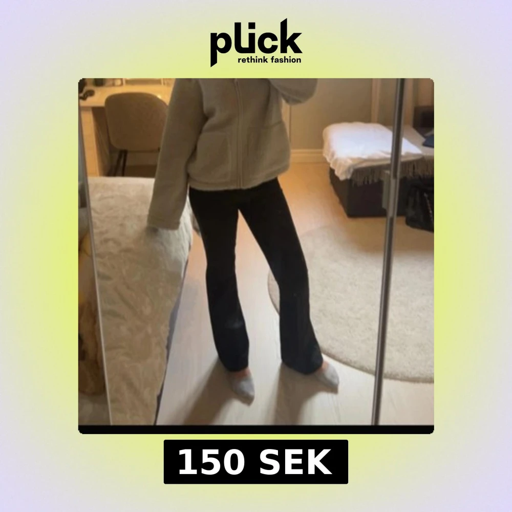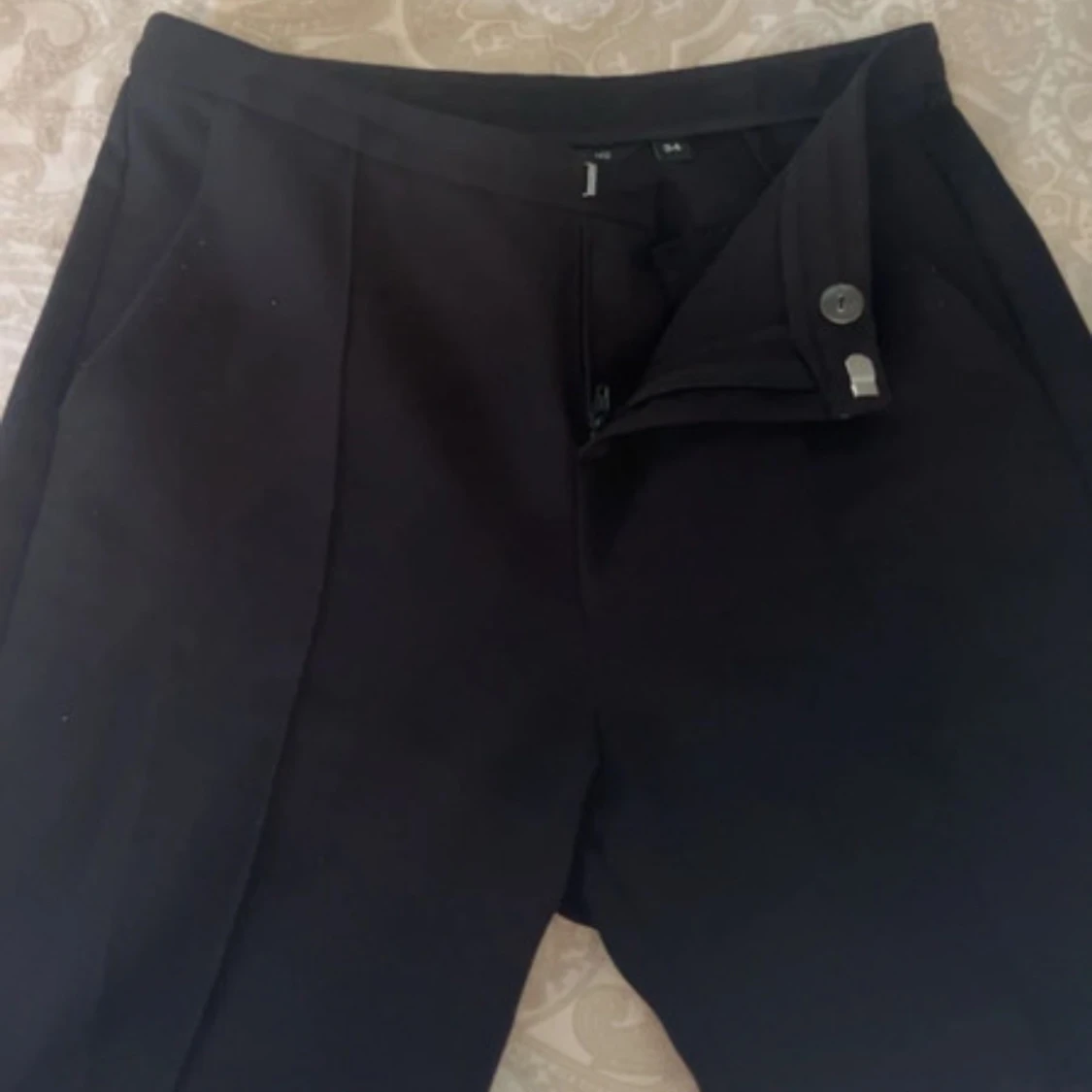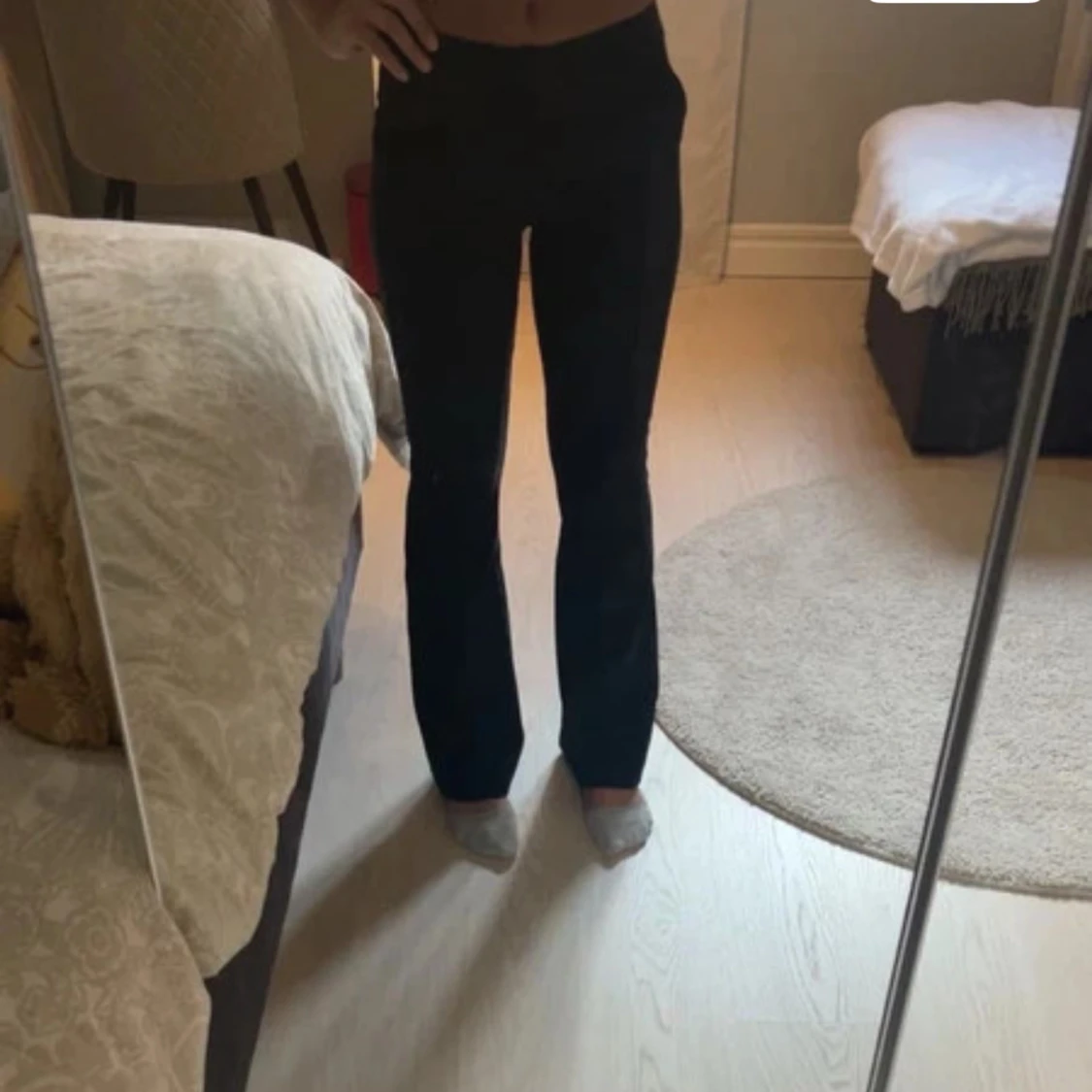 Säljer ett par svarta kostymbyxor i bootcut-modell i mid waist. Byxorna har klassisk dragkedja och knapp framtill. Snygg passform som sitter tajt upptill och släpper ut vid bensluten.