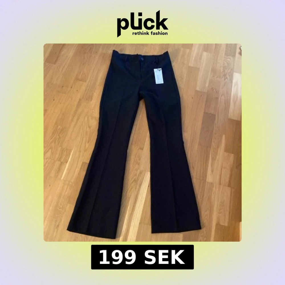 Svarta bootcut kostymbyxor från RYVLS. Byxorna har hällor för bälte och stängs med knapp och dragkedja. Snyggt skräddade ben och stilren look, perfekt för en clean outfit. Dom är aldrig använda då dom var för små. Storlek 170/176, är dock små i storleken. Nypris 499kr.
