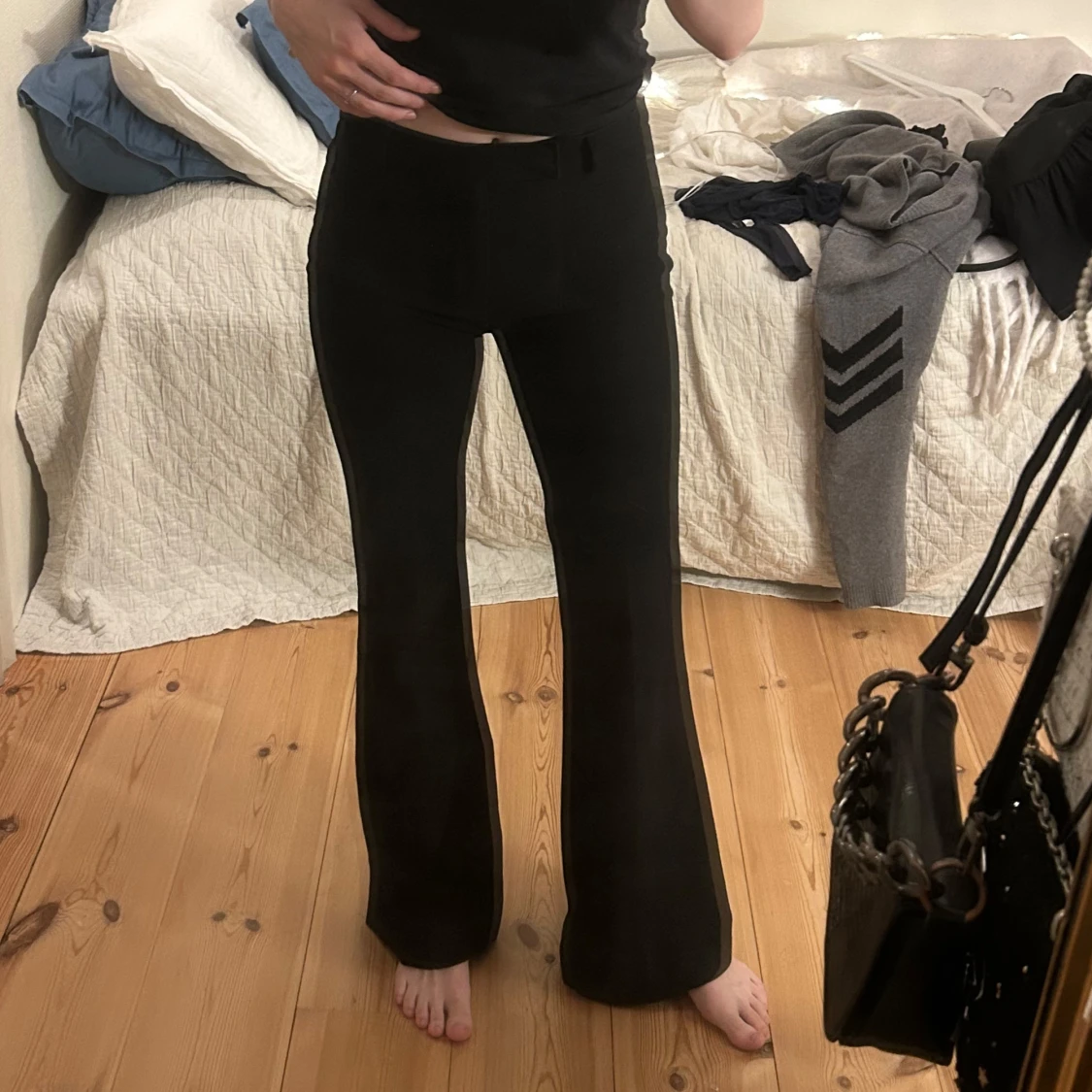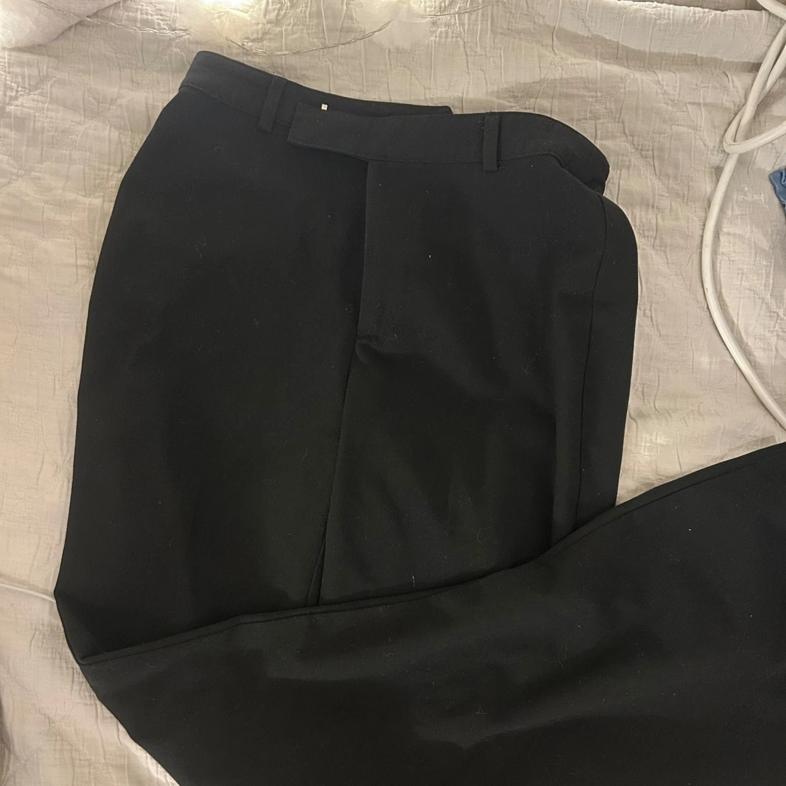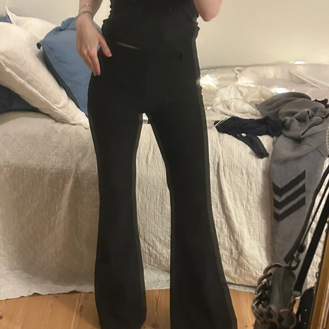 Säljer ett par svarta kostymbyxor med bootcut passform och hög. Pull&Bear, strl M men passar mig som har S. 130kr, knappt använda