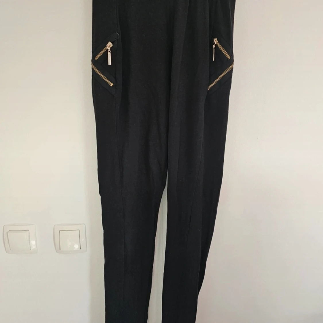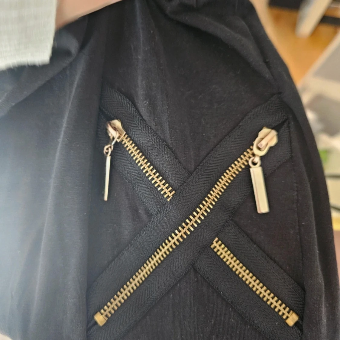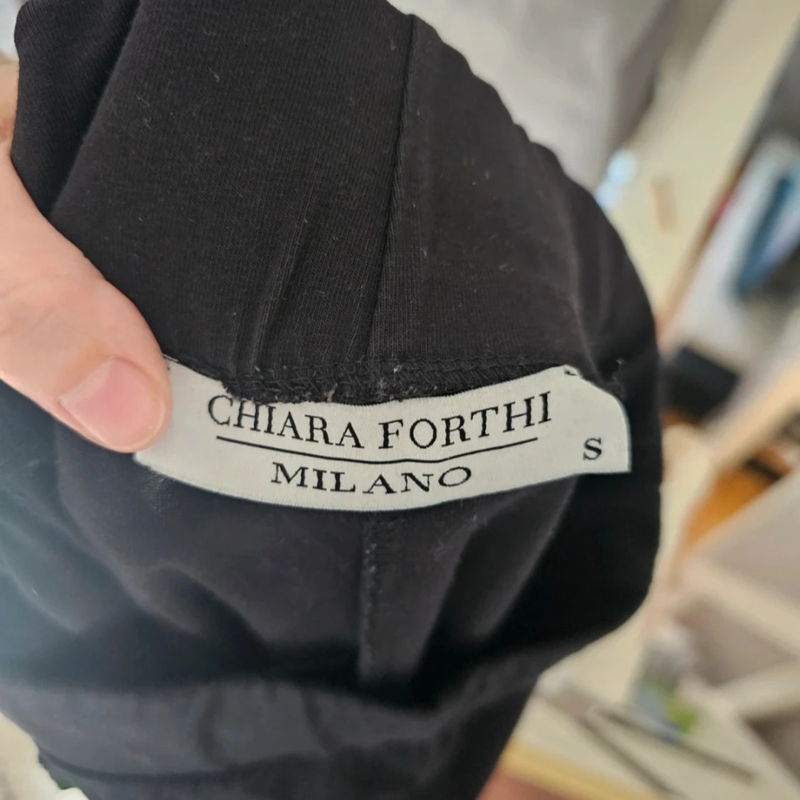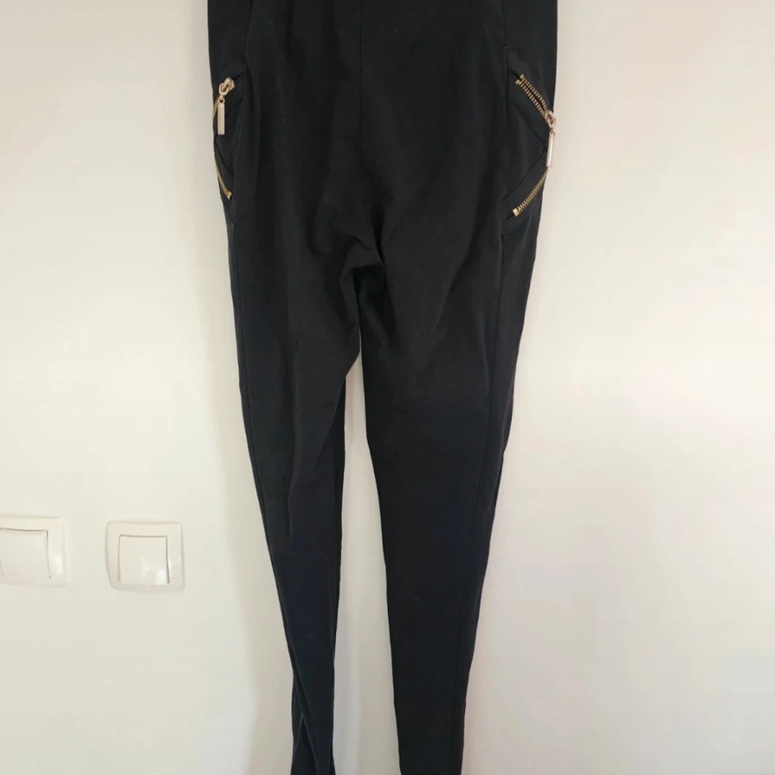 Svarta byxor från Chiara Forthi med snygga guldfärgade dragkedjor framtill. Byxorna är tillverkade i mjuk bomull med stretch för skön passform. De har en smal siluett och passar perfekt till en trendig streetstyle-look.