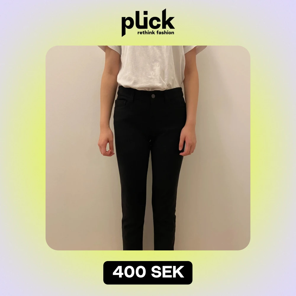 Snygga svarta byxor från Agnès b. i storlek 36. De är högmidjade och har en slim passform som ger en stilren look. Perfekta för både vardag och fest. 🖤
