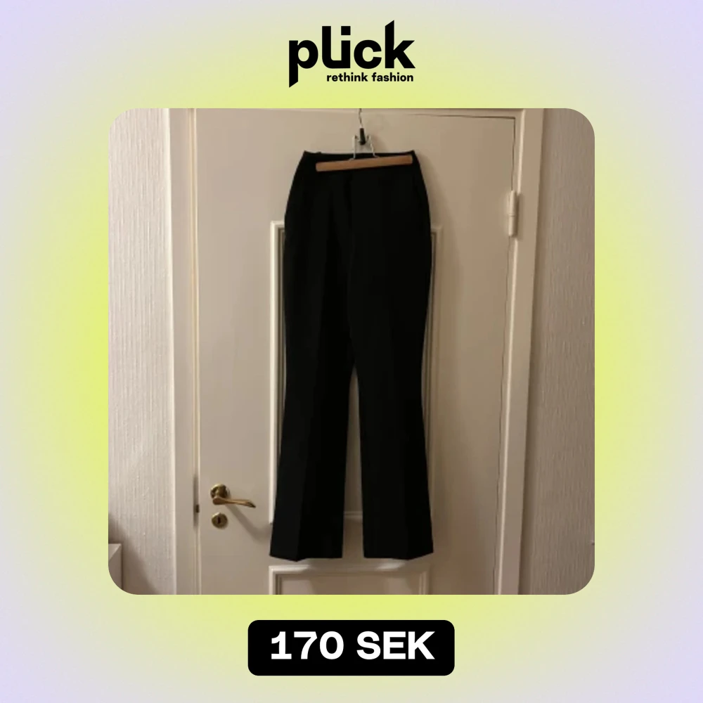 Säljer ett par snygga svarta byxor från BikBok i storlek 34. De är gjorda av 92% polyester och 8% elastan, vilket gör dem både bekväma och stretchiga. Perfekta för både vardag och fest!