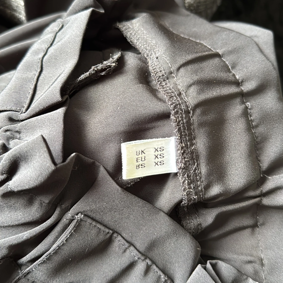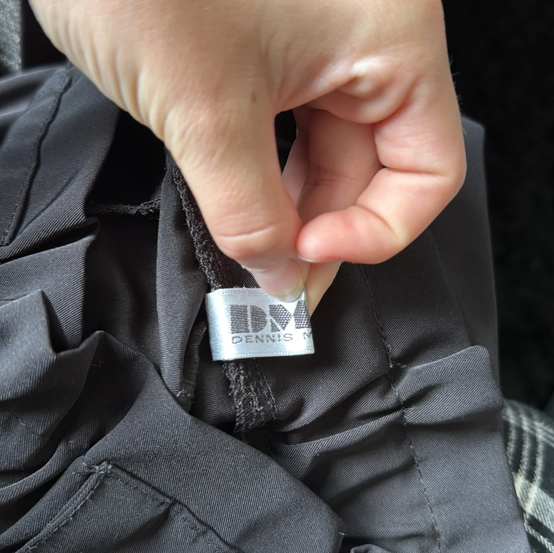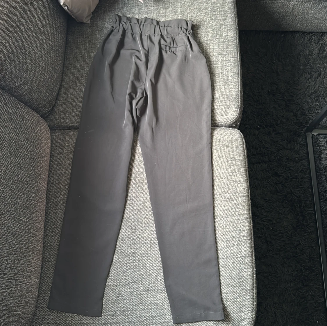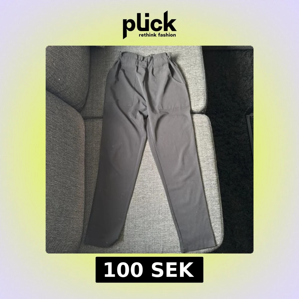 Svarta byxor från Dennis Maglic i storlek XS. De har resår i midjan, raka ben och sidfickor framtill. Materialet känns mjukt och lätt. Fint skick!