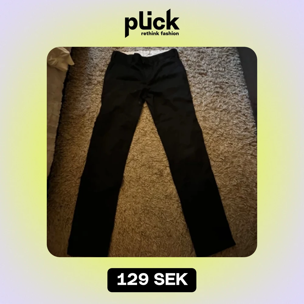 Säljer ett par svarta slim fit byxor från Dickies. De är i bra skick och perfekta för både vardag och fest. Byxorna har en klassisk stil och är gjorda i ett slitstarkt material. Kan Mötas upp i Värmland
