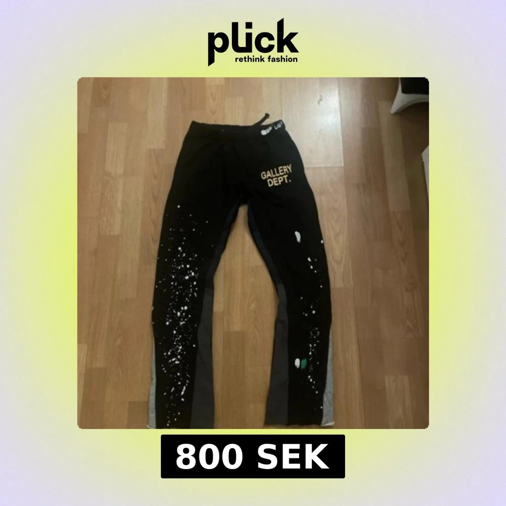 Snygga svarta byxor från Gallery Dept. med unika färgstänk och tryck. Byxorna har en elastisk midja för extra komfort och är tillverkade i bomull. Perfekta för en avslappnad stil med en konstnärlig touch.