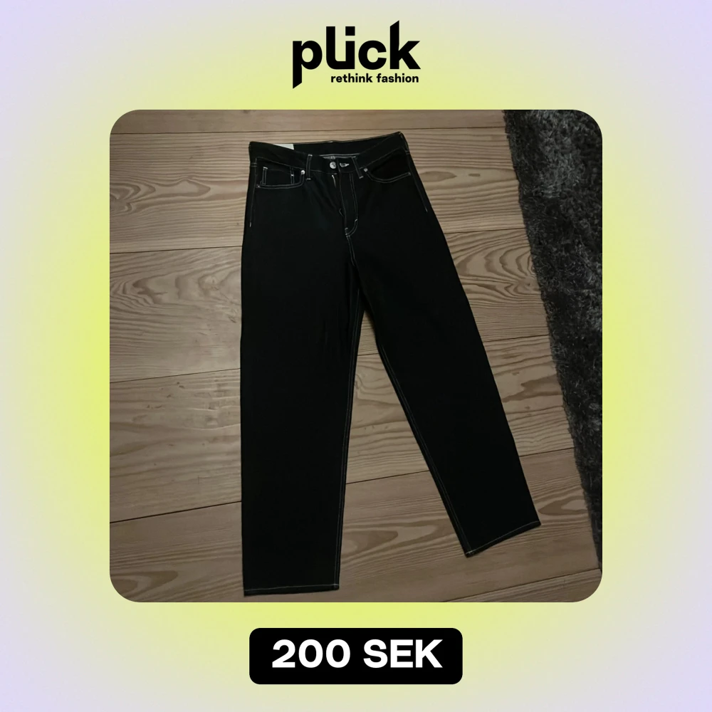 Säljer ett par mörka denim byxor från H&M med loose fit. Byxorna har en klassisk design med fem fickor och knappgylf. Perfekta för en avslappnad stil. Har inte använt en ända gång så är nya. Köpt för mindre än en månad sedan för 349