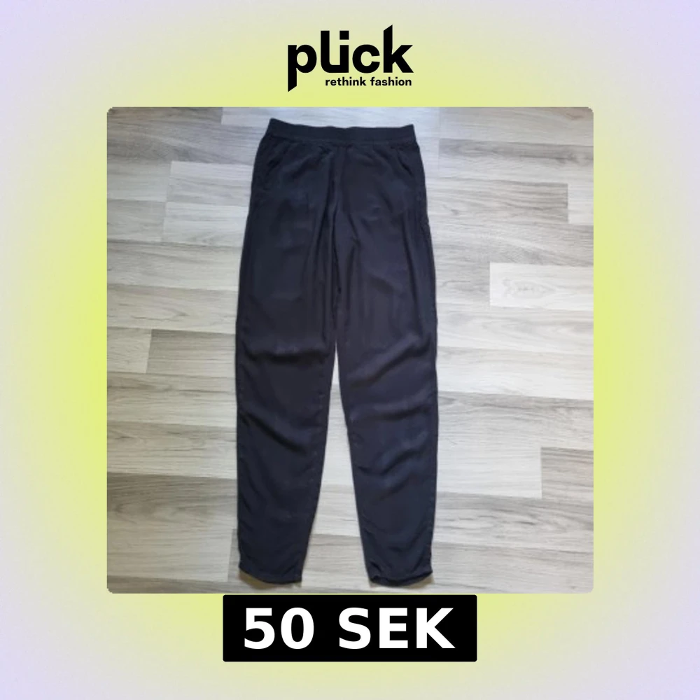 Svarta byxor från H&M Divided i storlek 34. Byxorna har resår i midjan och två sidofickor. Tillverkade i mjukt viskostyg som känns skönt mot huden. Perfekta för en chill och avslappnad stil.