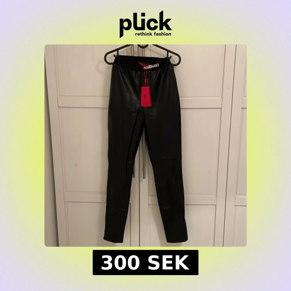 Den är helt nytt och har aldrig använts som ni kan se på bilderna är prislappen fortfarande kvar. Det nya priset är 900kr. 😃Snygga svarta byxor från Hugo i syntetmaterial med en elastisk midja. Perfekta för en stilren look. Byxorna har en tight passform och är designade för att sitta bekvämt hela dagen.