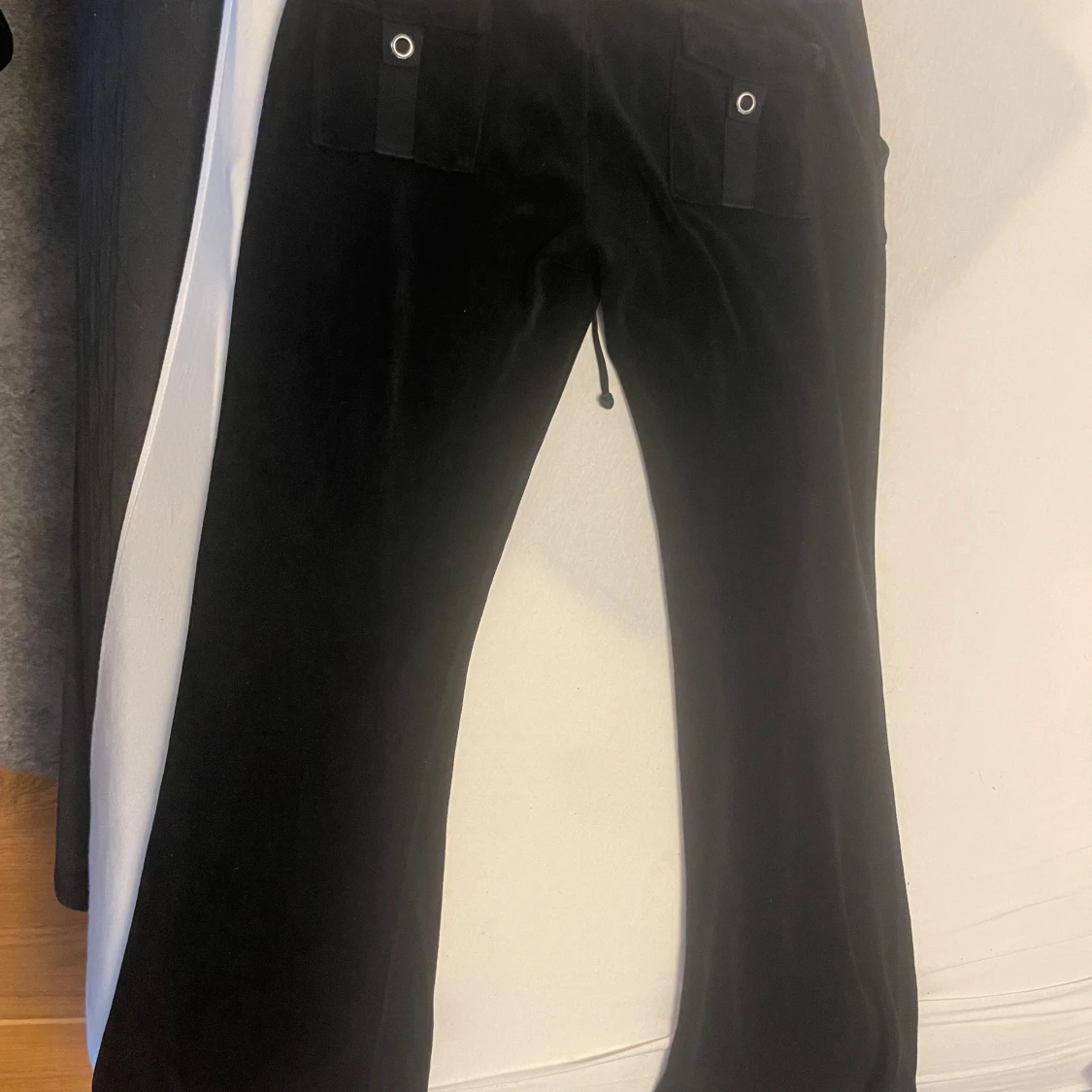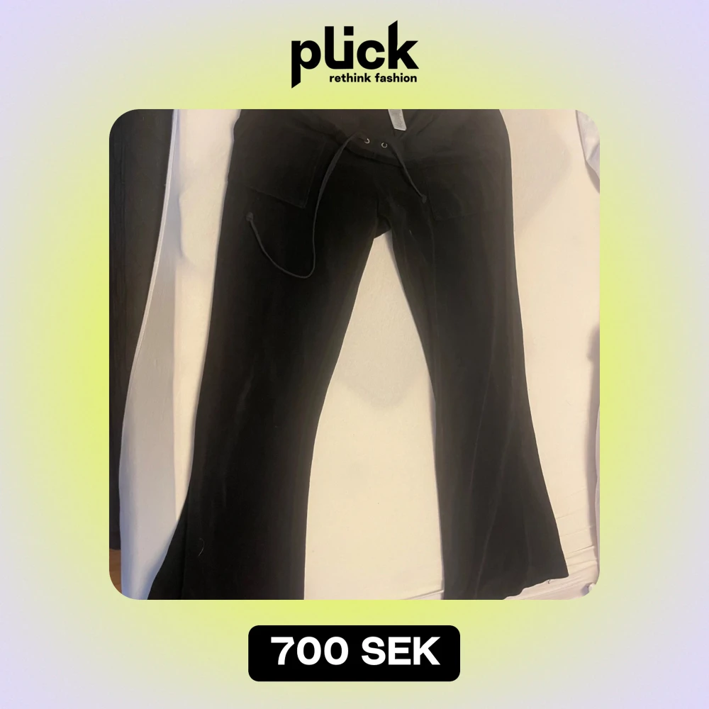 Snygga svarta byxor från Juicy Couture i mjukt material. Det i ok skick då dem är vintage och materialet är ganska strävt. Säljer dem då dem var för korta på mig, ( är 1,67), passar personer som är runt 1,60 och neråt. Sömmen har gått upp lite på ena fickan men kan lätt fixas hos skräddaren.