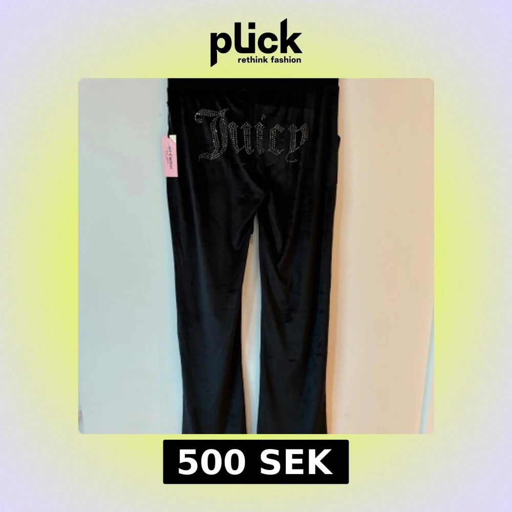 Supermjuka byxor från Juicy Couture i svart plysch och ikoniska loggan i rhinestones bak. Två fickor fram. Helt nya med tag!