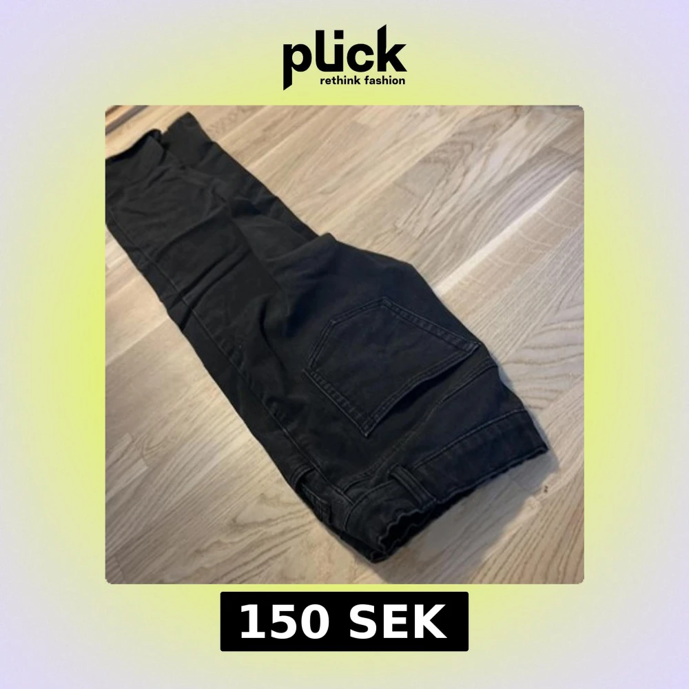 Snygga svarta byxor från Lindex med en praktisk ficka på sidan. Perfekta för en avslappnad stil. Byxorna har en knapp och dragkedja framtill.