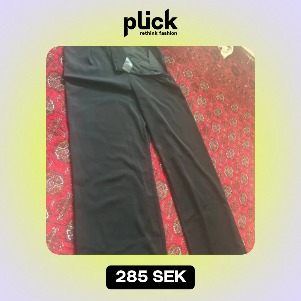Säljer ett par stilrena svarta byxor från NA-KD. De är högmidjade och har en klassisk rak passform. Perfekta för både vardag och fest! 🖤De är uppsydda jag är 160 med dem är fortfarande för långa på mig.