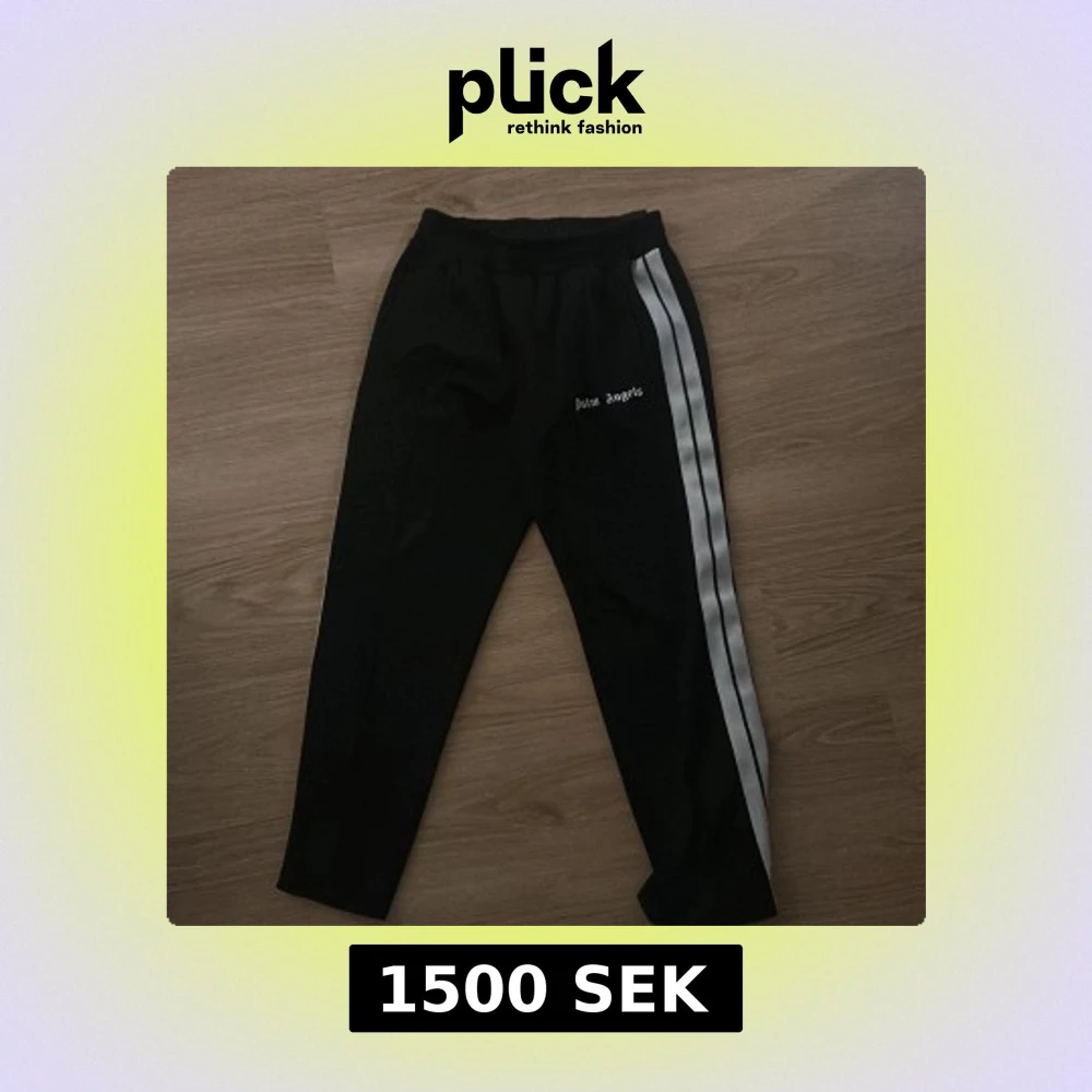 Snygga svarta byxor från Palm Angels med vita ränder längs sidorna. Byxorna har en elastisk midja och är tillverkade i polyester. Perfekta för en avslappnad stil med en touch av lyx.