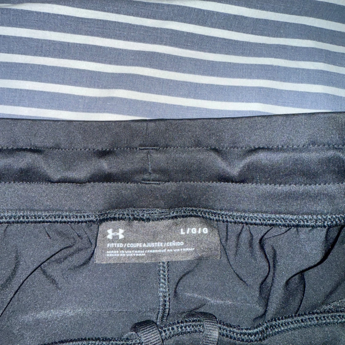 Svarta byxor från Under Armour med diskret logga på benet. Tight passform och elastisk midja, perfekta för träning eller löpning. Tillverkade i ett stretchigt syntetmaterial som andas och ger bra rörelsefrihet.