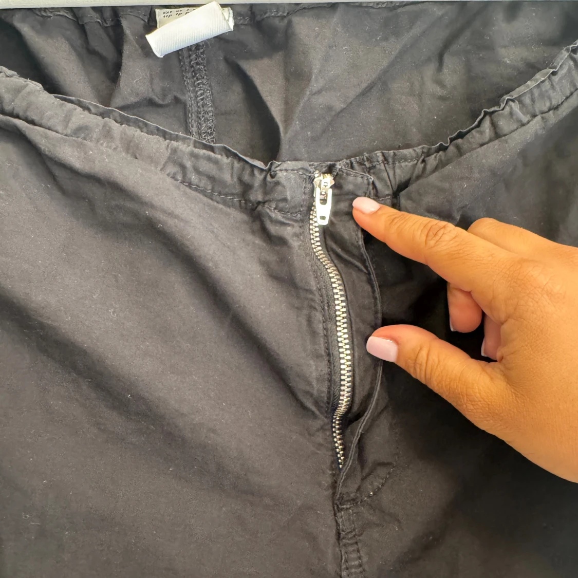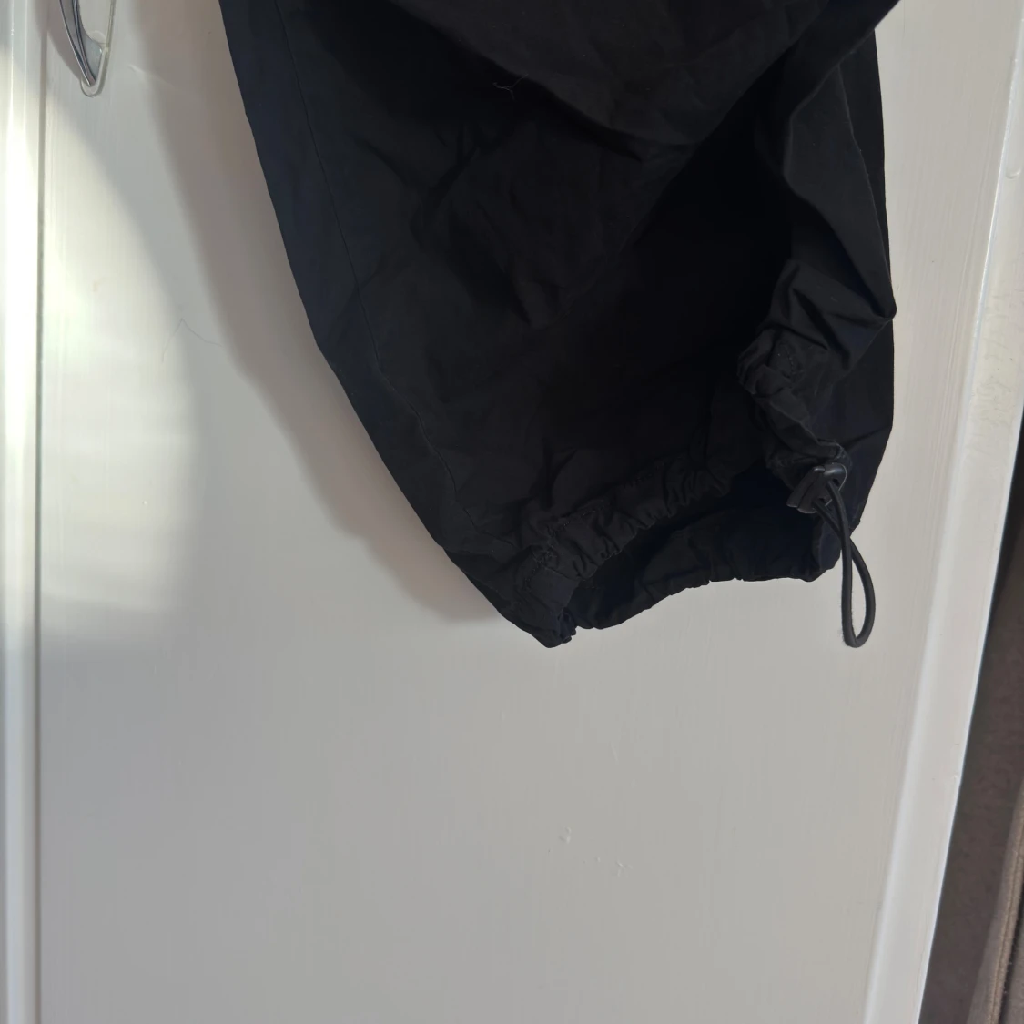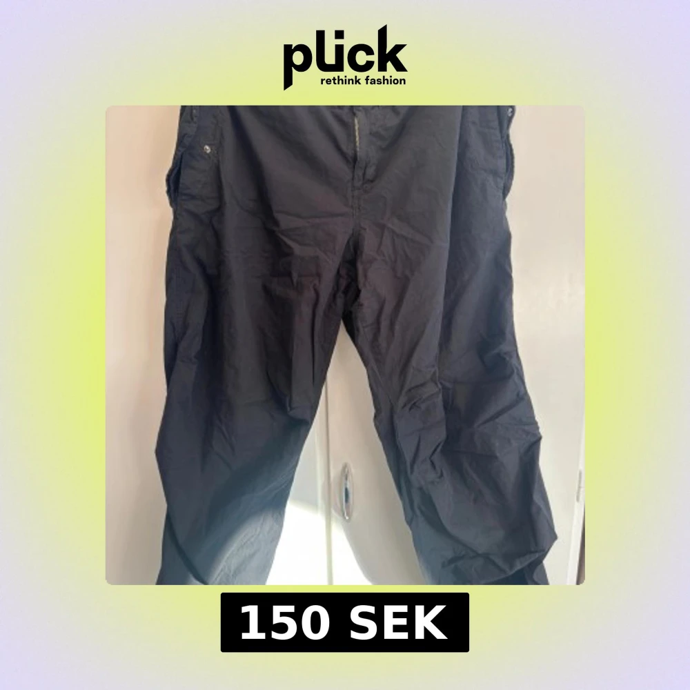 Svarta cargopants från Urban Outfitters i storlek XL. Byxorna har dragkedja framtill, snörning vid benslut och flera fickor. Tillverkade i bomullsmix, loose fit och perfekt för en chill streetwear-look.