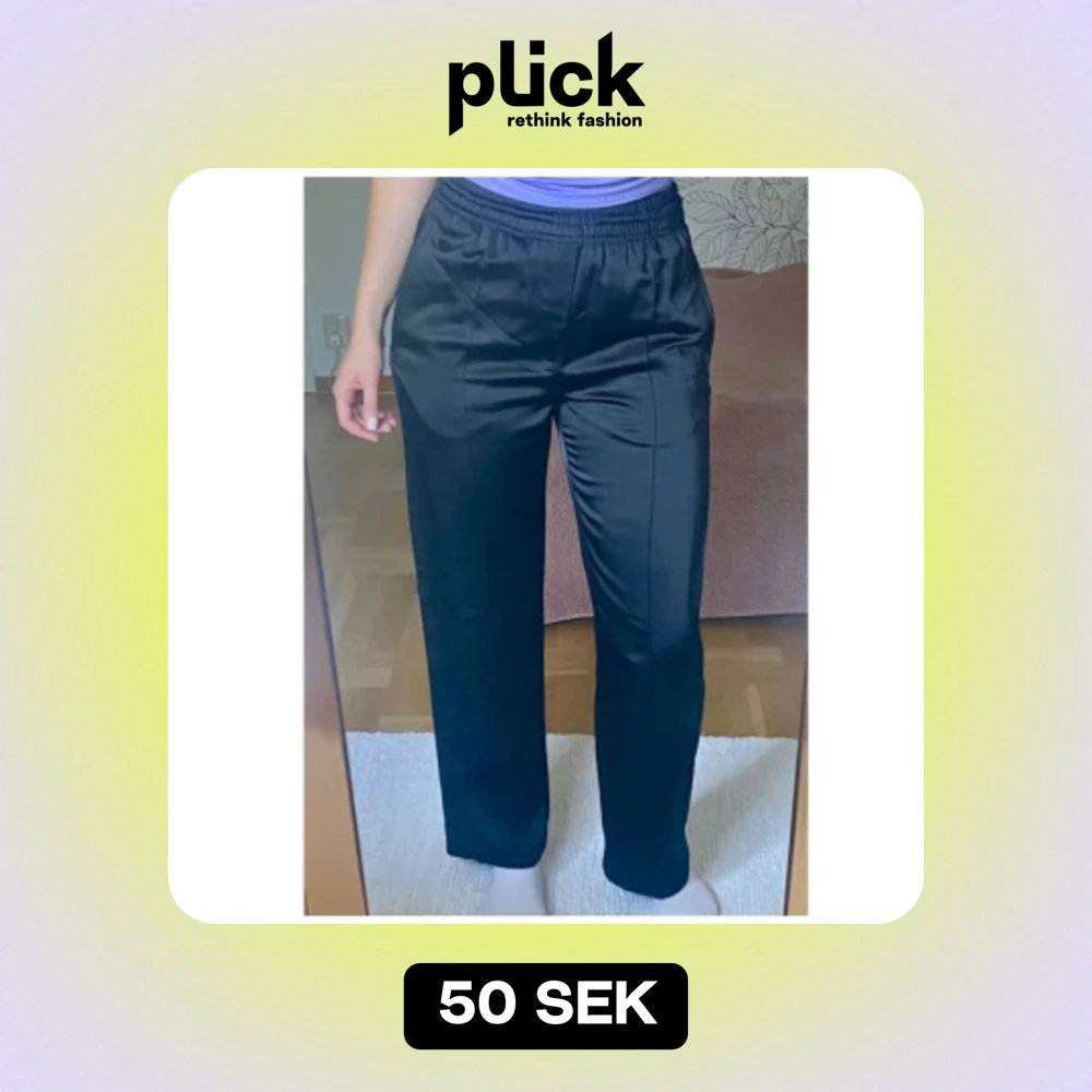 Svarta byxor från Weekday i storlek S. 🖤Använda ett fåtal gånger! ☺️ De har elastisk midja och dragkedja vid fickorna. Jag är 167cm lång.