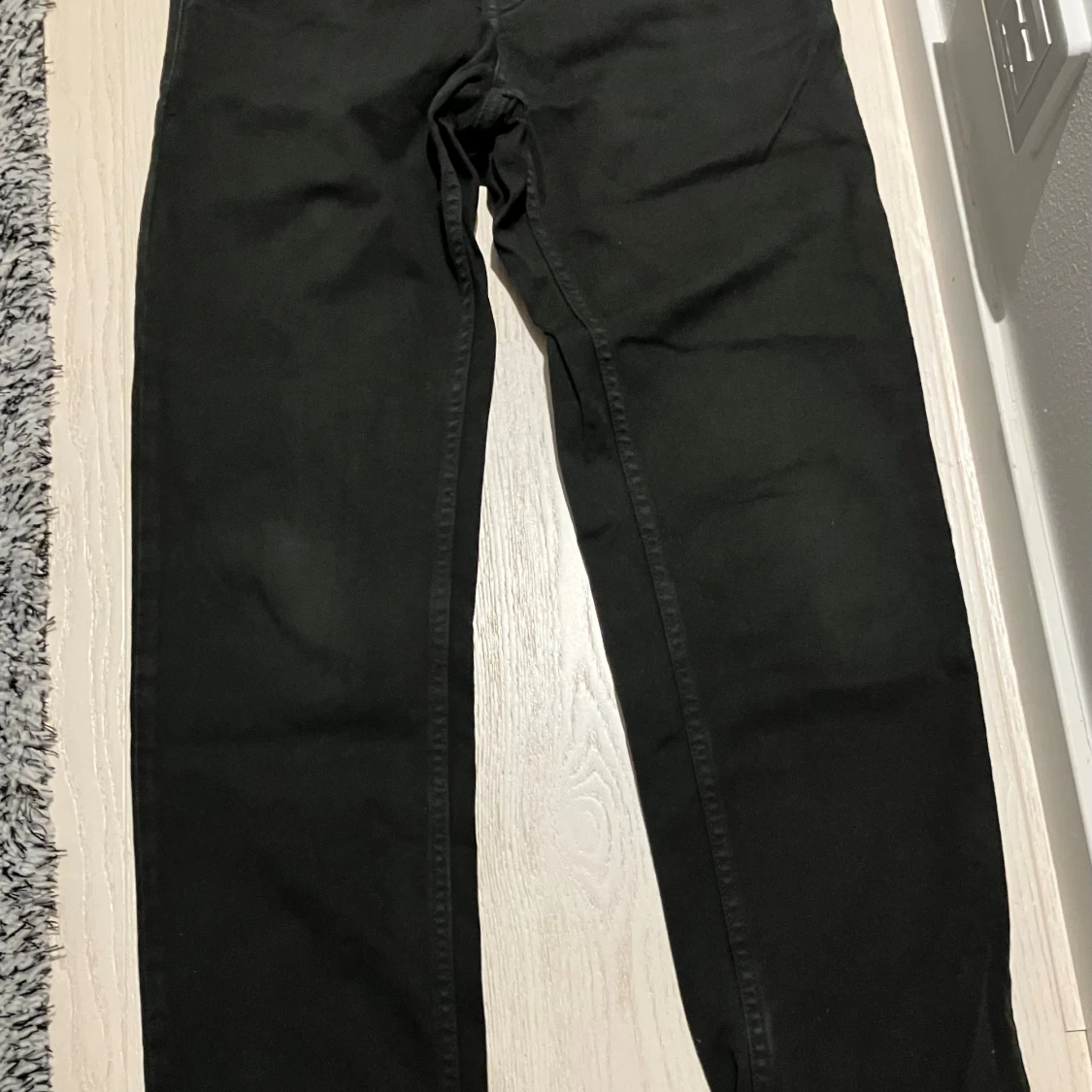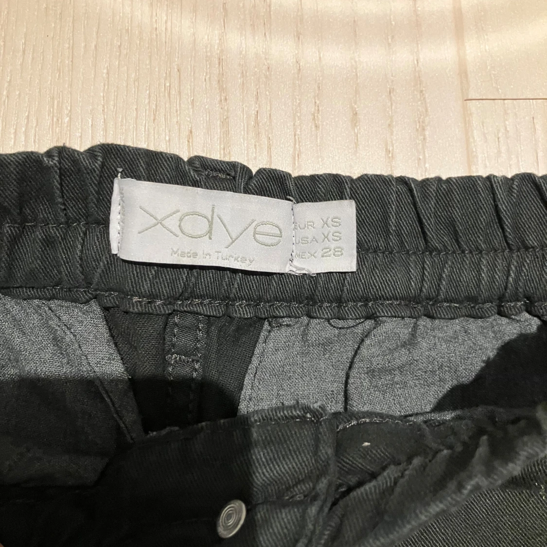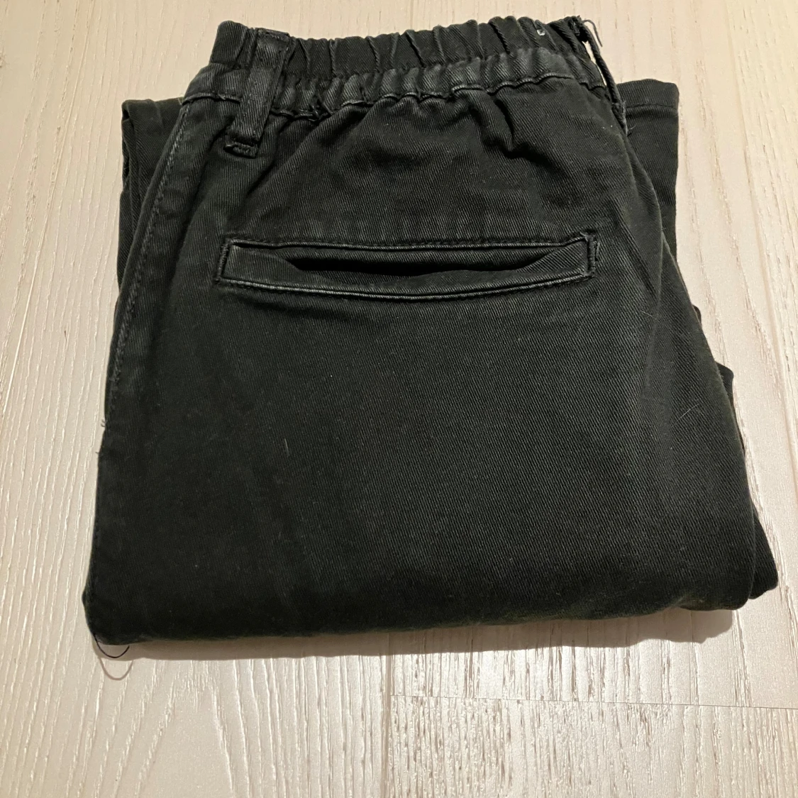 Svarta jeans från Xdye med elastisk midja och raka ben. Byxorna har en enkel bakficka och är tillverkade i ett mjukt bomullsliknande material.