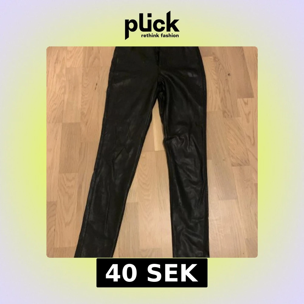 Snygga svarta byxor i syntetmaterial från BikBok. De har en tight passform och hög midja, vilket ger en stilren look. Perfekta för att skapa en edgy outfit.