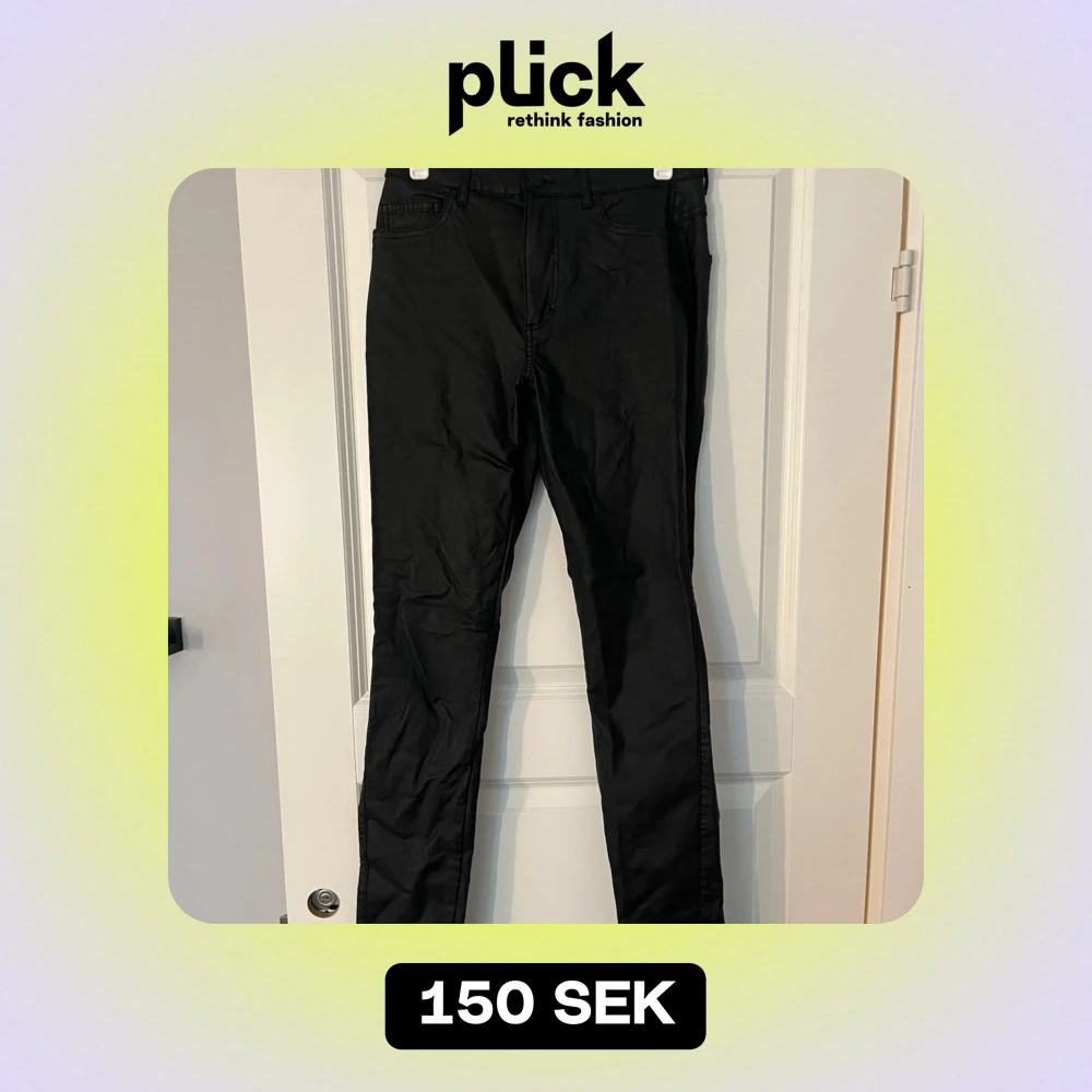 Säljer ett par svarta skinnbyxor i bra skick. De har en klassisk stil med en rak passform och är perfekta för både vardag och fest. Byxorna har en dragkedja och knappar framtill. Passar till alla säsonger och är ett måste i garderoben!
