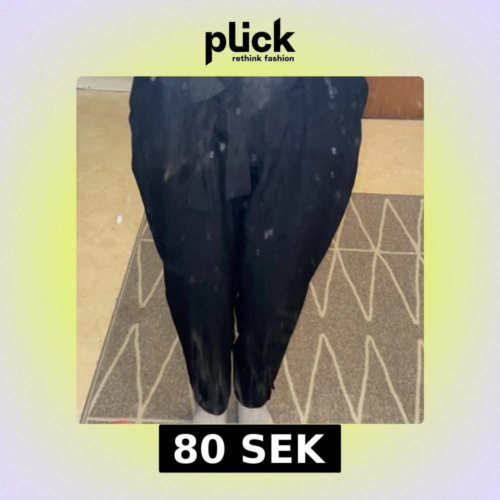 Svarta byxor från 157 i storlek S. De har hög midja med elastisk resår och ett snyggt knytband framtill. Byxorna har en rak och lite lösare passform, perfekta för en chill och stilren look. Materialet känns mjukt och lätt, vilket gör dem sköna att bära hela dagen.