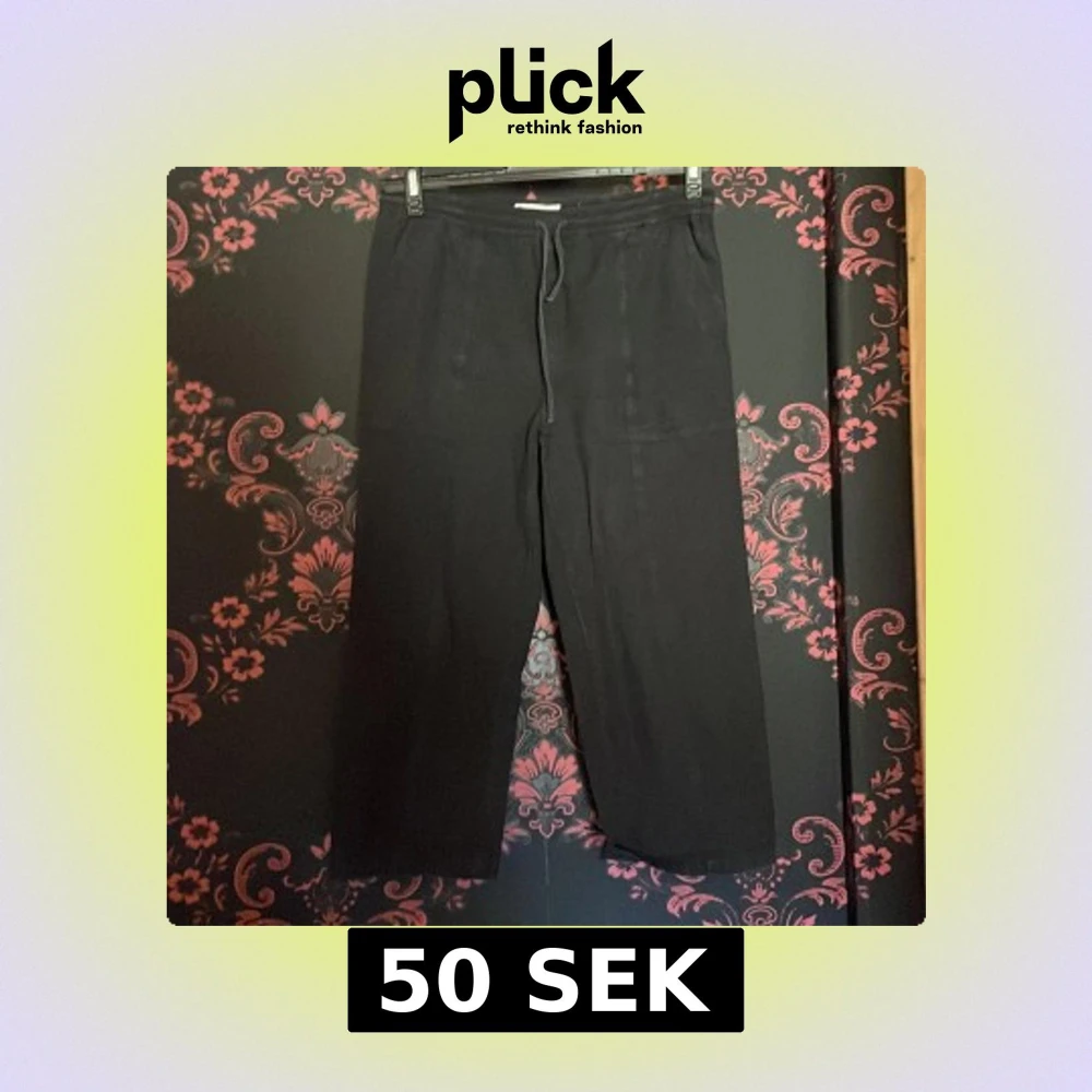 Säljer ett par svarta capri byxor från Cappuccini. De har en avslappnad passform med resår i midjan och snörning. Perfekta för en bekväm stil.