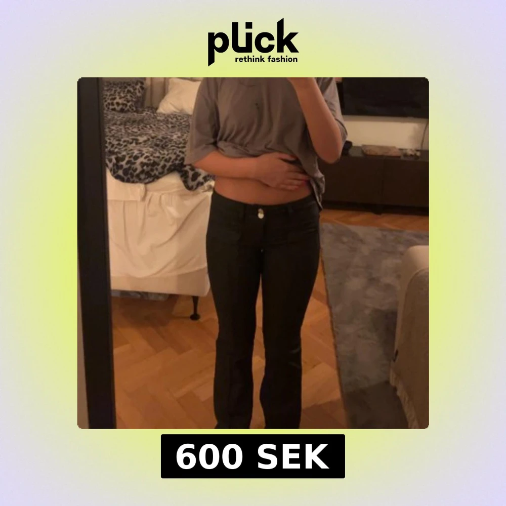 Snygga svarta byxor med en tight passform. Perfekta för en stilren look och kan enkelt matchas med olika toppar. Byxorna har en klassisk design med knapp och dragkedja framtill. Och väldigt lågmidjade