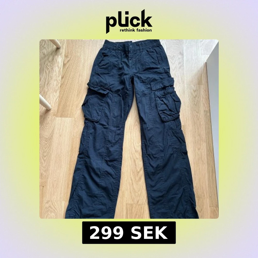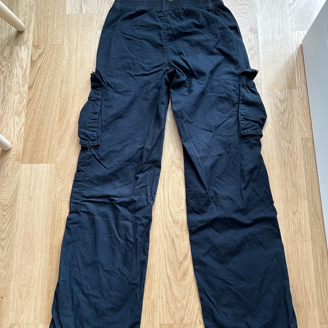 Säljer ett par svarta cargobyxor från H&M med flera praktiska fickor. Använd en gång 🩷