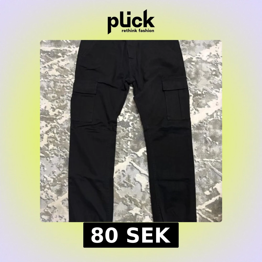 Svarta cargobyxor från Saligia med raka ben och stora fickor på sidorna. Byxorna har klassisk cargostil med bälteshällor och knappstängning. Perfekta för en avslappnad och cool look.