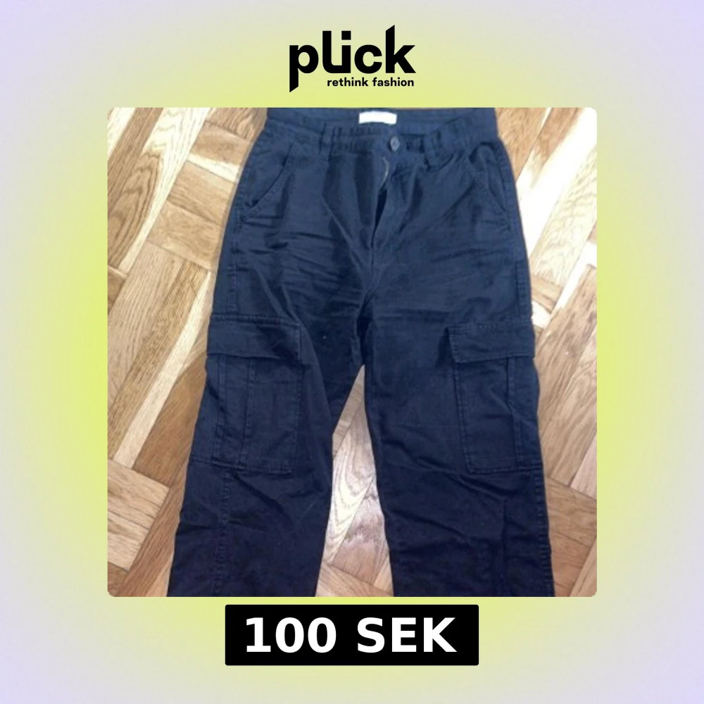 Svarta cargopants från STR med klassiska stora fickor på sidorna och raka ben. Bra skick, raka i benen och superskönt material. Lagom längd i benen på mig som är 176