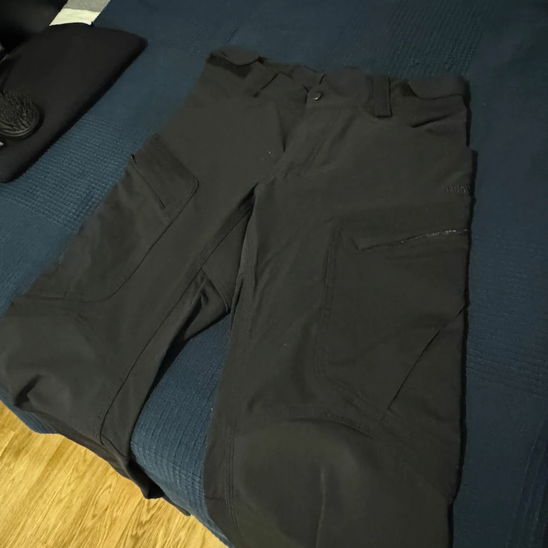 Svarta cargopants från Haglöfs med flera praktiska fickor och dragkedjor. Byxorna är tillverkade i slitstarkt material och har en modern, funktionell look. Perfekta för dig som gillar outdoor och vill ha något som både är snyggt och praktiskt. Splitter nya