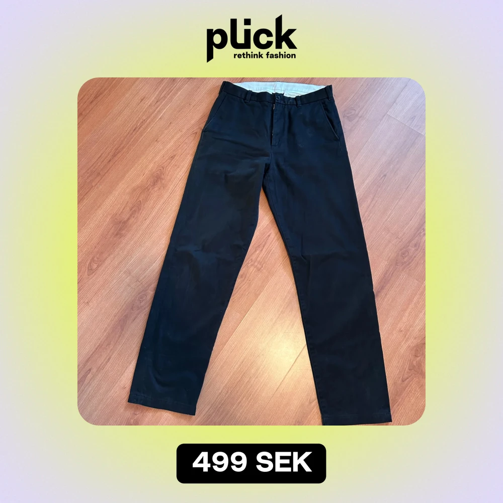Säljer ett par stilrena svarta chinos från Arket. Bild 3 visar hur de sitter på. De har en klassisk rak passform med dragkedja och knapp framtill. Perfekta för både formella tillfällen och kontoret. Ordinariepris ca 1200kr. Byxorna är i mycket bra skick och är i storlek Eu 46. Hör av er vid frågor eller funderingar! Pris går att diskutera!