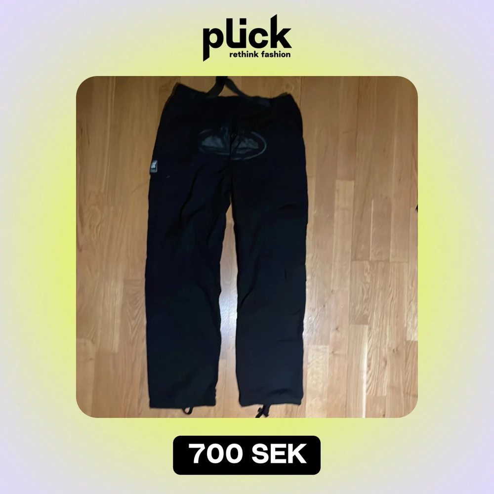 Säljer ett par svarta byxor från Corteiz i storlek M. Byxorna är i bra skick! Helt oanvända.