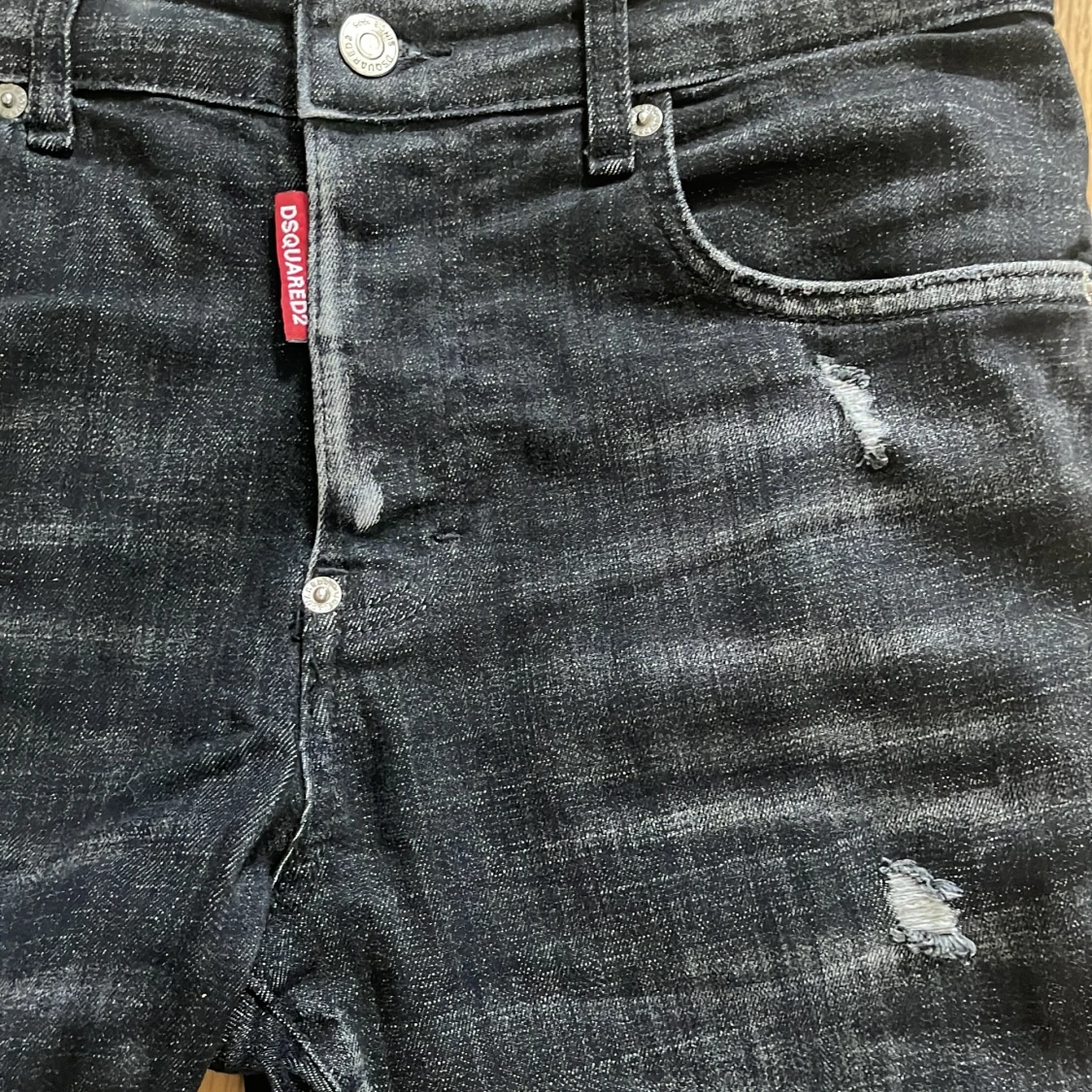 Dessa passar dig som är 170-175 kanske om du är 180. Snygga svarta jeans från Dsquared2 med slitna detaljer och cool tvätt. Klassisk femficksmodell med Dsquared2-logga på bakfickan och röd etikett fram. Jeansen har låg midja och är tillverkade i stretchig denim för en tight passform.