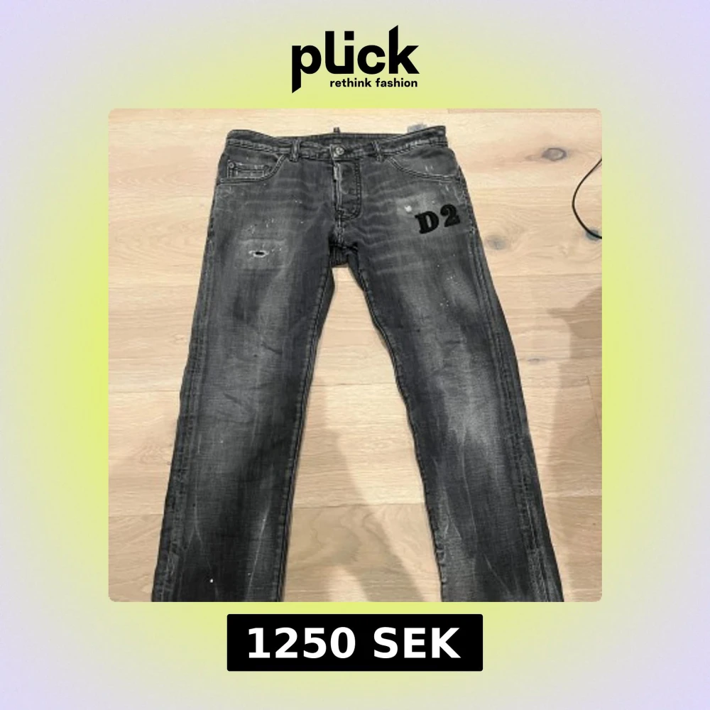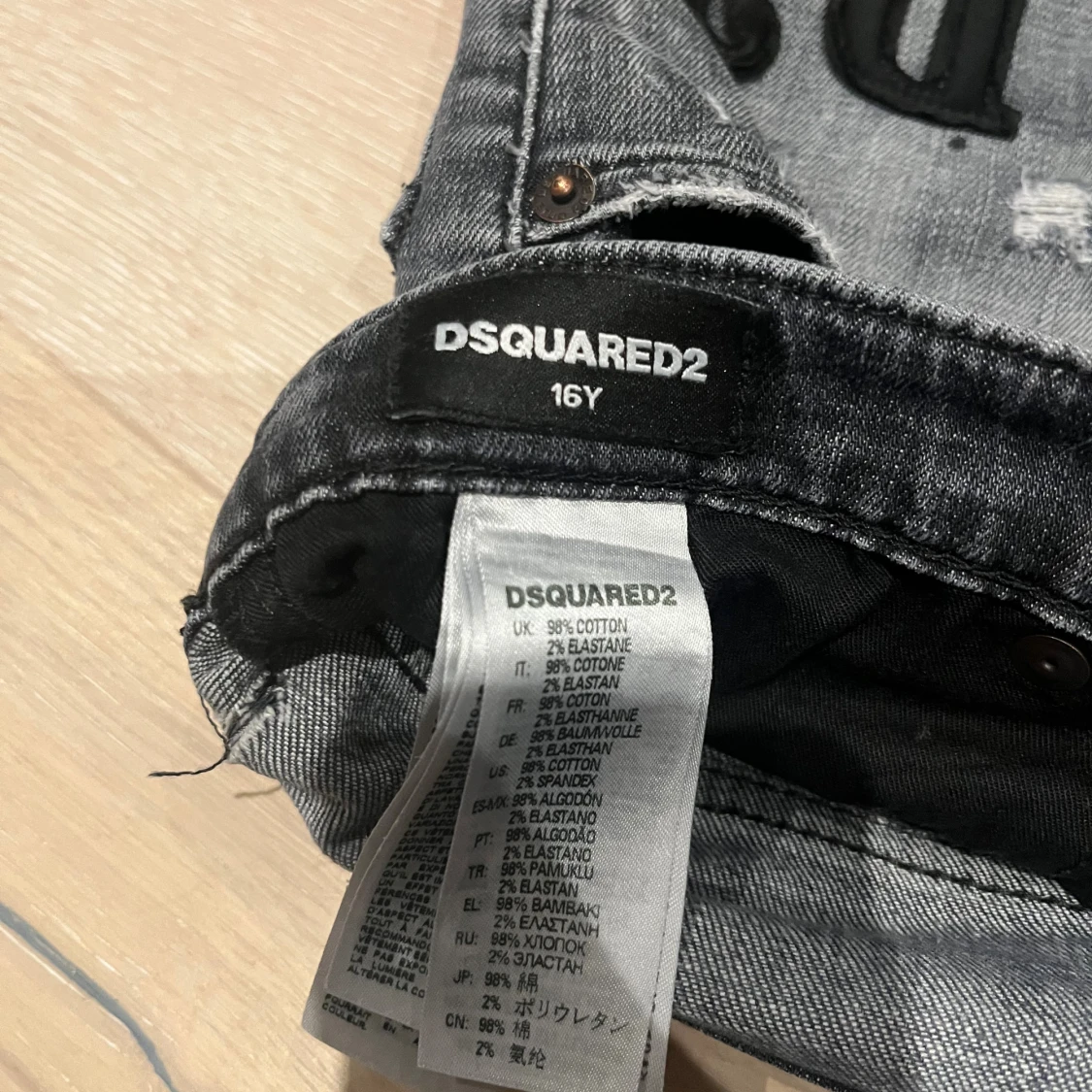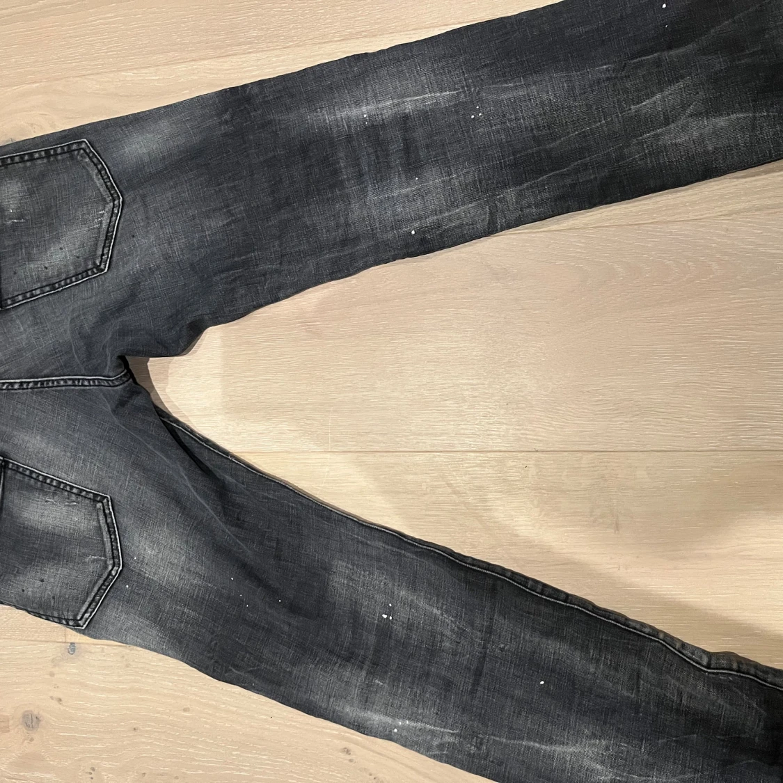 Snygga svarta jeans från Dsquared2 med D2-tryck på ena fickan. Jeansen har en tvättad look med slitningar och små färgstänk för en cool vibe. Tillverkade i bomull med lite elastan för skön stretch. Klassisk femficksmodell och raka ben.