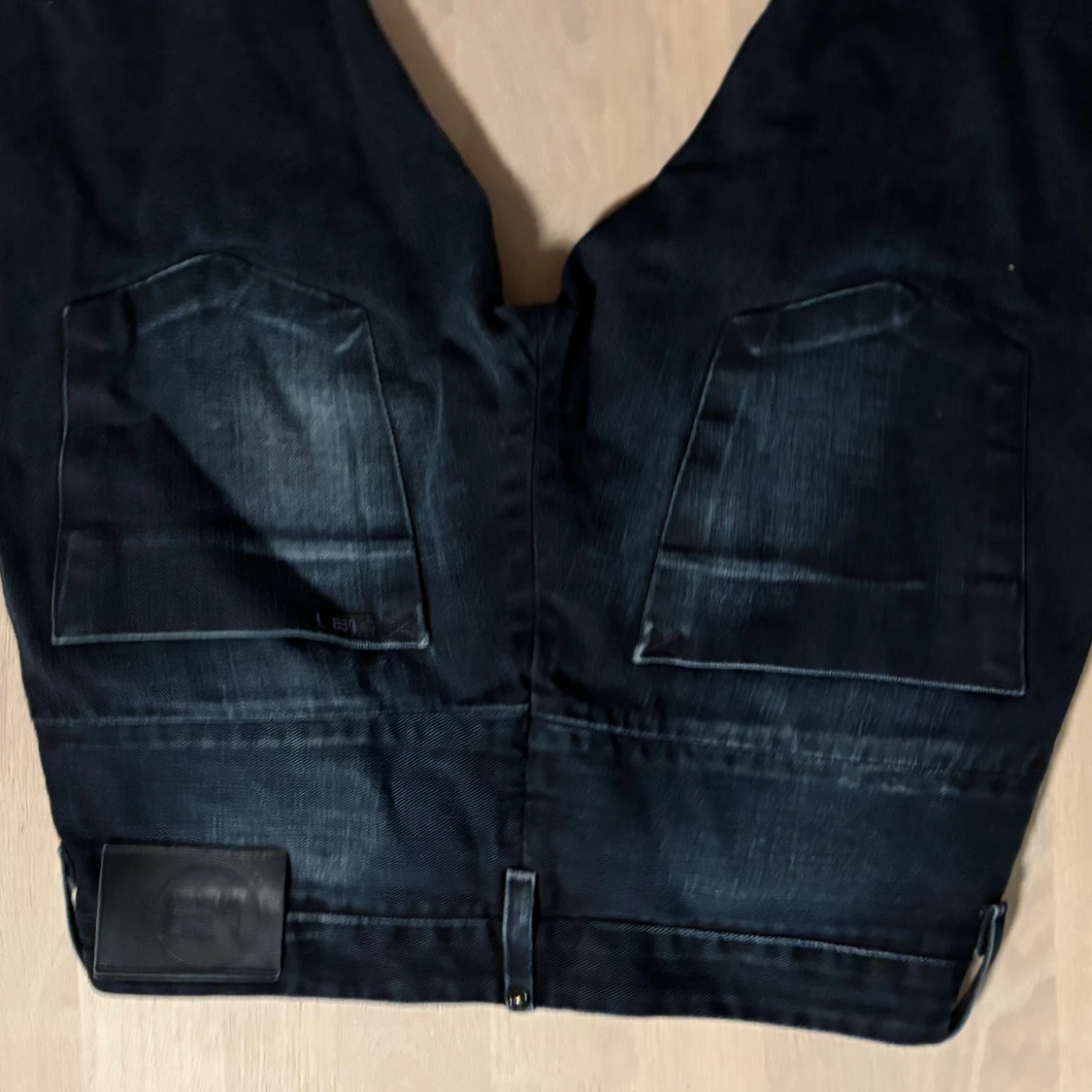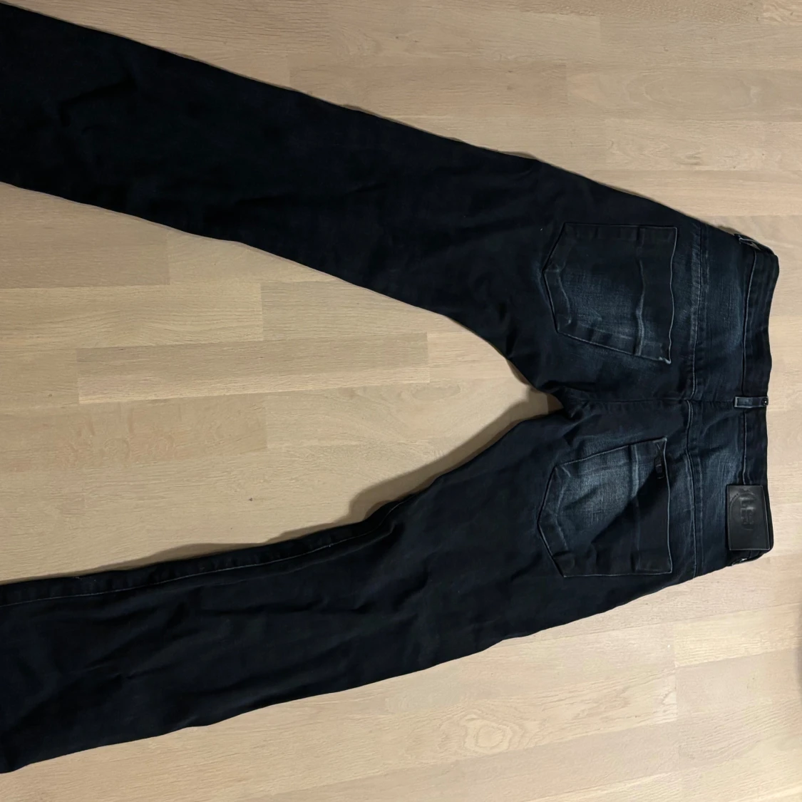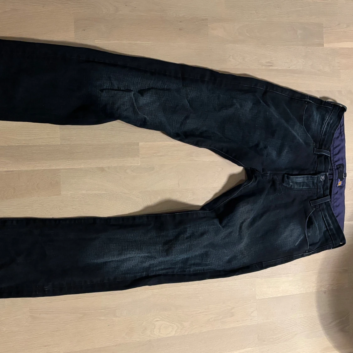 Säljer ett par svarta G-Star RAW Powell jeans med snygg tvätt och raka ben. Jeansen har klassiska fem fickor, bälteshällor och lila innerfoder i midjan. Tillverkade i bomull med en skön passform som funkar till många stilar.